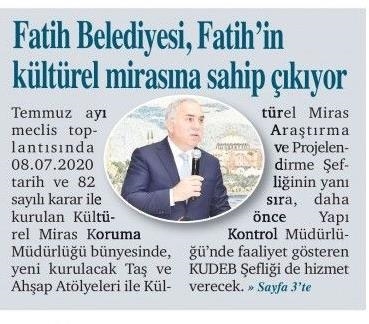 Fatih Kültürel Mirası Koruyor 21.7.2020 - Gazete Damga