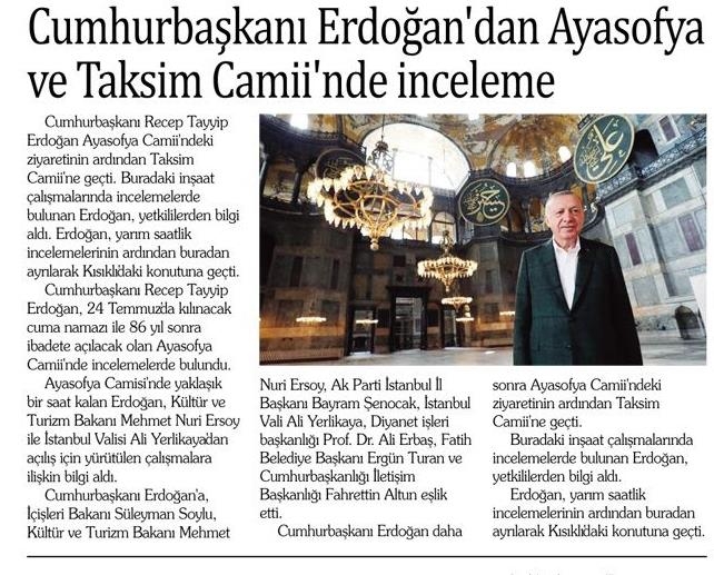 Erdoğan Ayasofya Camisi'nde İnceleme Yaptı 20.7.2020 - Ankara Gazetesi