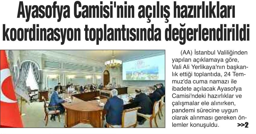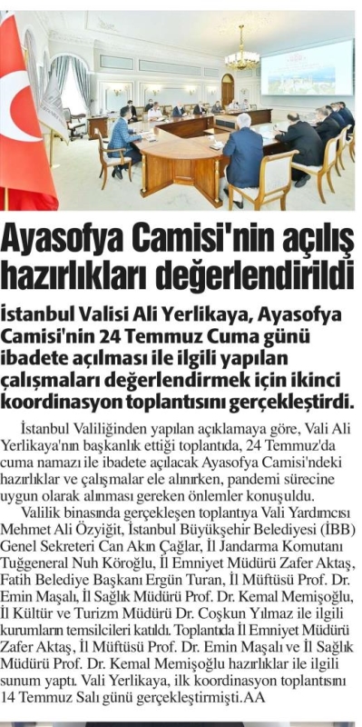 Ayasofya Camisi'nin Açılış Hazırlıkları Koordinasyon Toplantısında Değerlendirildi 18.7.2020 - Tünaydın Gazetesi