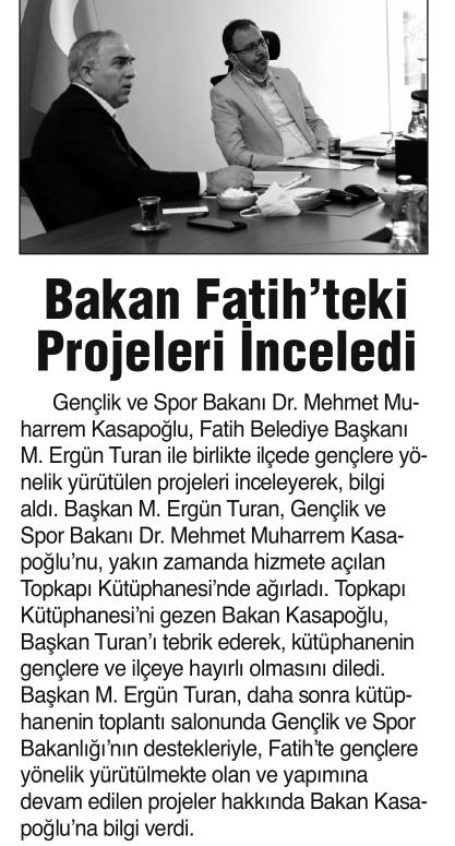 Bakan Fatih'teki Projeleri İnceledi 19.7.2020 - Tünaydın Gazetesi