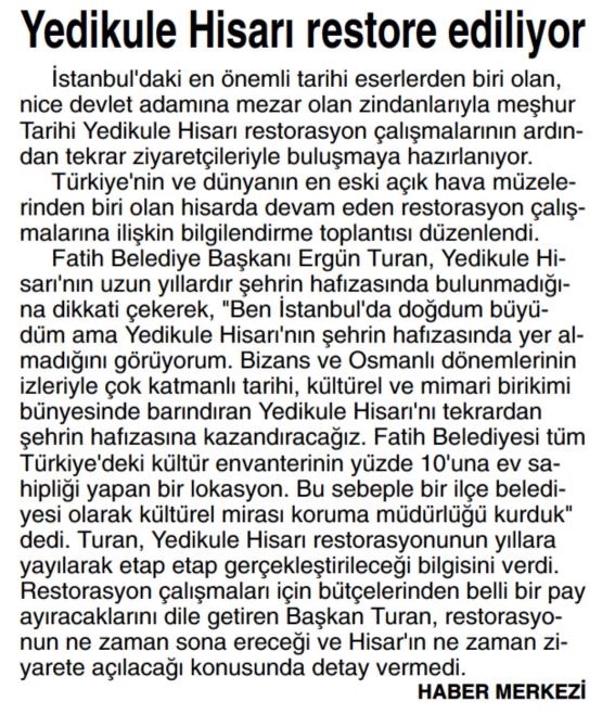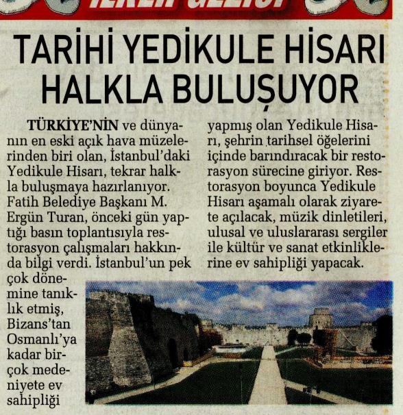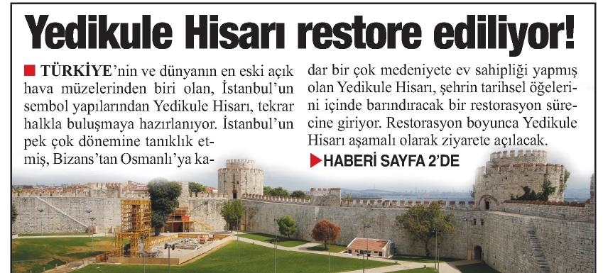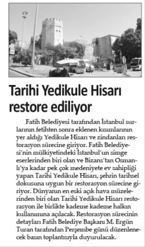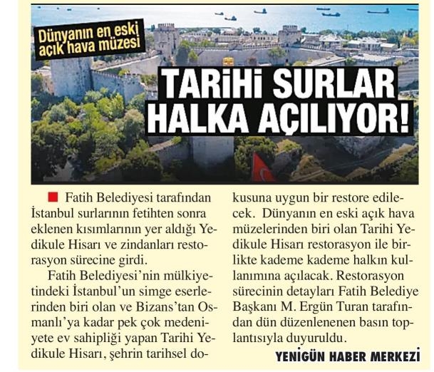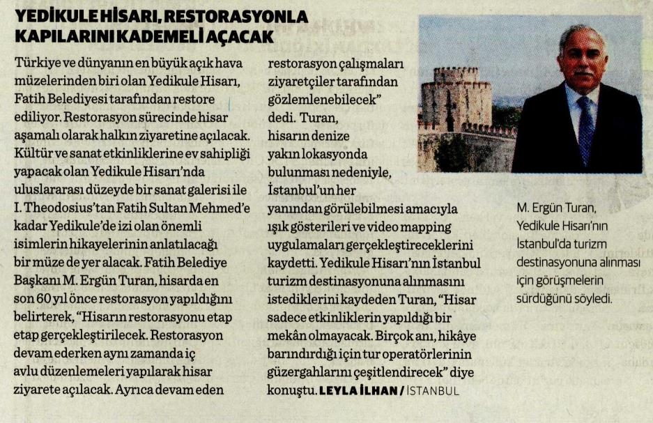 Yedikule Hisarı Yeniden Canlanıyor 28.9.2020 - Hürriyet Gazetesi