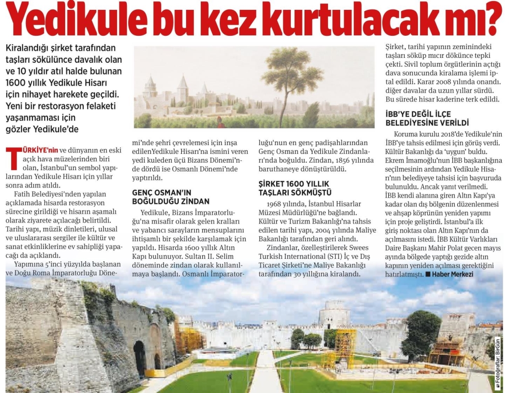 Yedikule Bu Kez Kurtulacak Mı? 25.9.2020 - Bir Gün Gazetesi