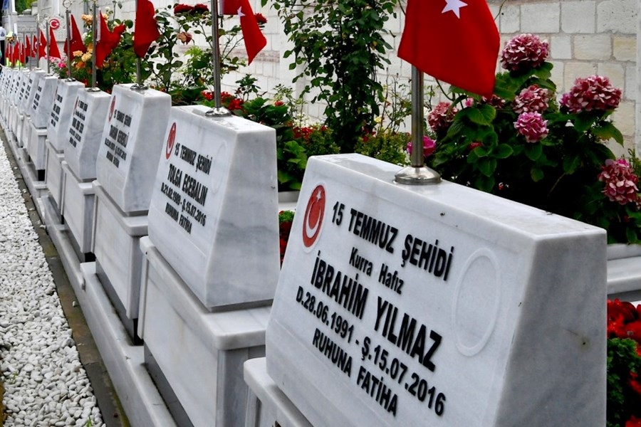 İstanbul Valiliği tarafından, 15 Temmuz Hain darbe girişiminin 3’üncü yıl dönümü dolayısıyla FETÖ'cü hainlerin 15 Temmuz kalkışmasını canlarıyla önleyen şehitler, Edirnekapı'daki 15 Temmuz Şehitliği'ndeki kabirleri başında dualarla anıldı.