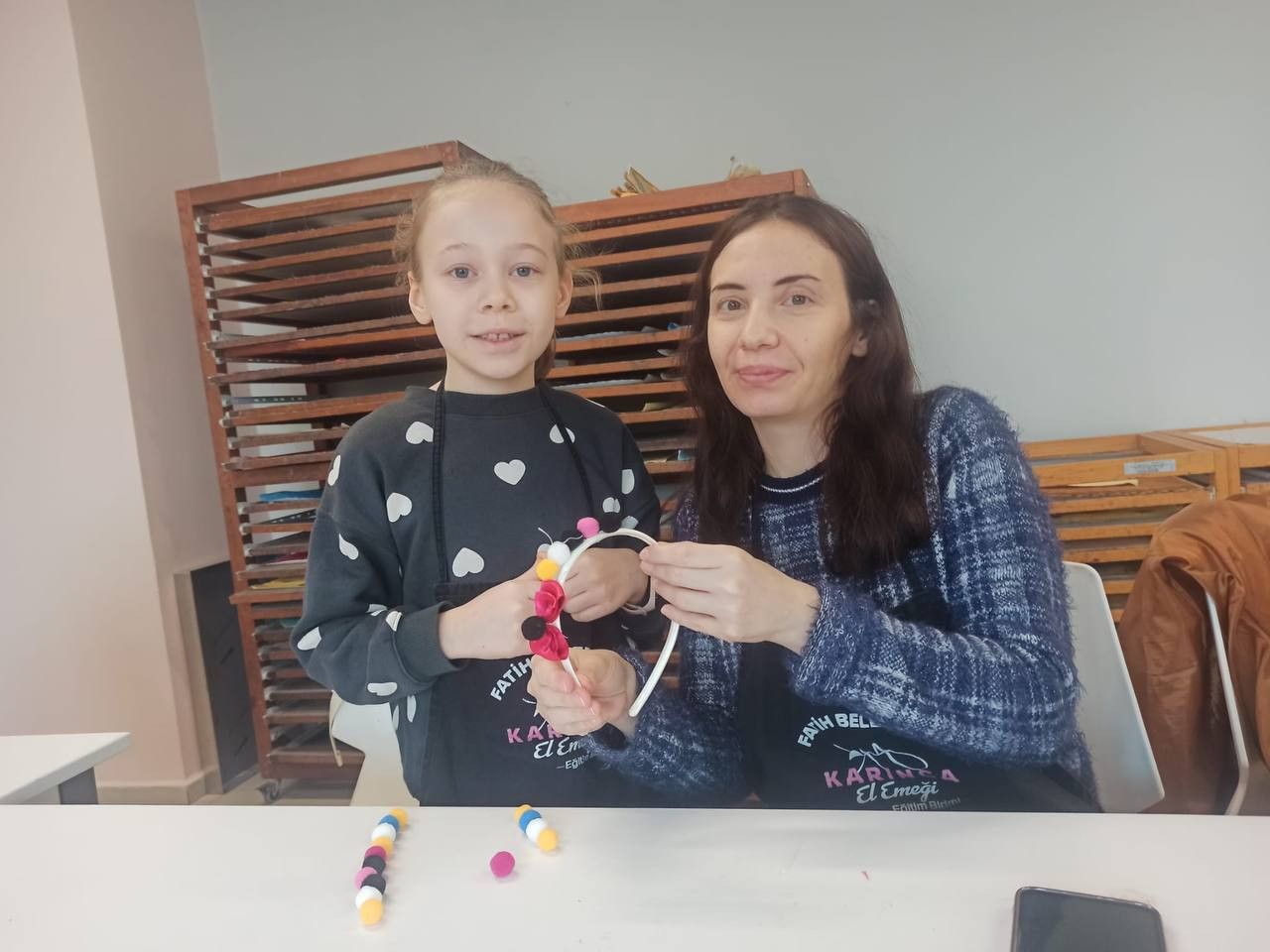 Fındıkzade KARINCA El Emeği Eğitim Birimi, Anne-Çocuk etkinlikleri kapsamında farklı ve yaratıcı çalışmalarına devam ediyor. Bu etkinliklerden biri olan “Taç Tasarlama”, annelerin çocuklarıyla birlikte keyifli ve anlamlı bir zaman geçirmelerini sağlıyor. Etkinlik sırasında katılımcılar, renkli kurdelelerden oluşan şekilleri taçlarına özenle yerleştirirken; rengârenk ponponlar ve diğer süslemelerle tamamen kendi özgün tasarımlarını ortaya çıkarma fırsatı buluyor.