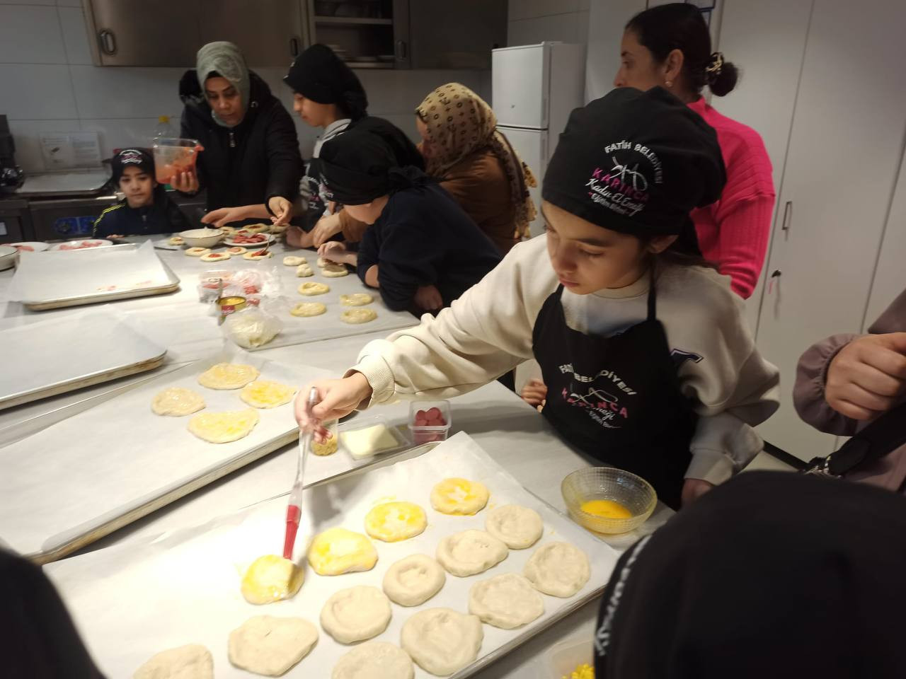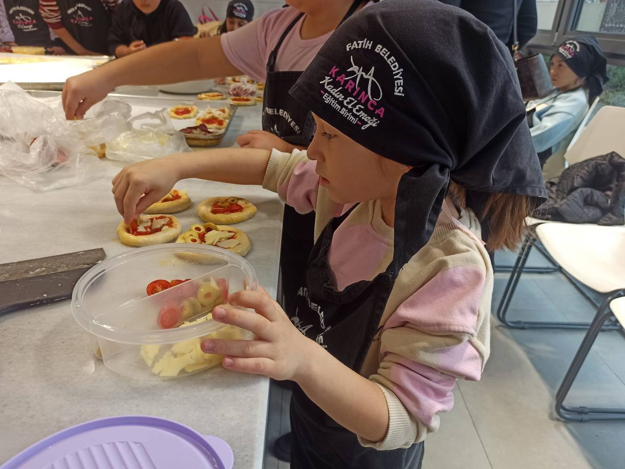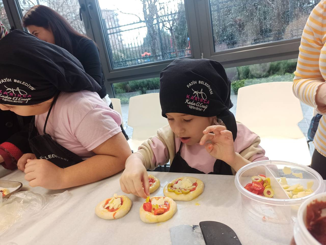 KARINCA El Emeği Eğitim Birimi tarafından Silivrikapı Eğitim Birimi’nde düzenlenen Mini Pizza Yapım Atölyesi anneleri ve çocukları bir araya getirerek mutfak sanatlarına olan ilgiyi artırmayı hedefledi. Atölyede katılımcılar hamur yapımının inceliklerinden pişirme tekniklerine kadar birçok temel aşamayı deneyimleyerek öğrenme fırsatı buldu. İlk olarak pizza hamurunun ana bileşenleri tanıtılarak yoğurma ve mayalama süreçlerinin doğru bir şekilde nasıl yapılması gerektiği uygulamalı olarak gösterildi. Bu aşamada çocuklar ve anneleri hamur yoğurmanın ve mayalamayı doğru şekilde gerçekleştirmenin inceliklerini uzmanlardan öğrenerek temel mutfak becerilerini geliştirdiler.