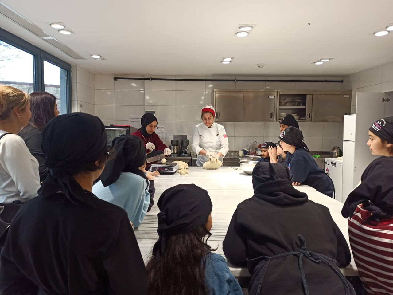 Hamur yapımı sonrasında katılımcılara hamurun el becerisi ile açılması için gereken teknikler ayrıntılı bir şekilde tanıtıldı. Hamuru açarken dikkat edilmesi gereken püf noktaları, bu süreçte el hareketlerinin önemi ve hamurun ince bir tabaka halinde nasıl açılacağı uygulamalı olarak gösterildi. Pizza tabanı için hazırlanan sosun yapım aşamasında ise en uygun malzemelerin seçimi, bu malzemelerin doğru oranlarda kullanılması ve sosun pizzanın lezzetine etkisi detaylı bir şekilde ele alındı. Katılımcılar sos yapımında kullanılan malzemelerin aromalarının nasıl dengelenmesi gerektiğini öğrenerek lezzetli bir taban oluşturmanın püf noktalarını keşfettiler.
