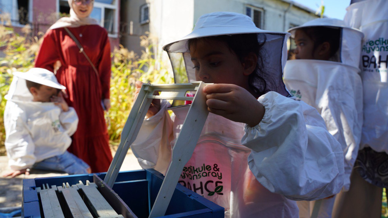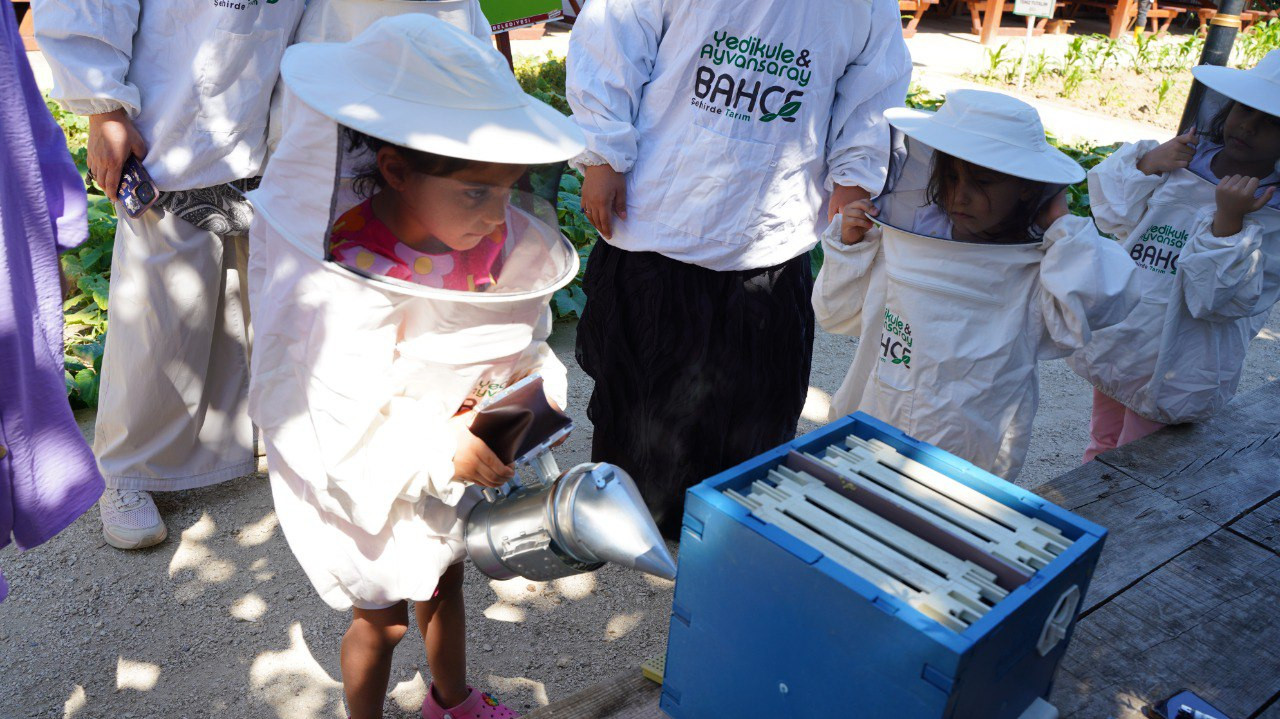 Ayvansaray Bahçe'de düzenlenen Arıcılık Atölyesi'nde çocuklar arıcılığın inceliklerini öğrendi. Arı kovanlarını keşfeden çocuklar bal üretim sürecini gözlemledi ve arıların ekosistemdeki rolünü öğrendi.