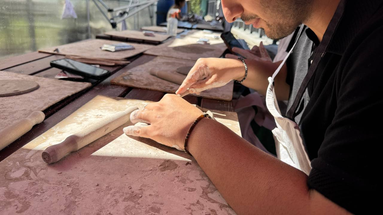 Atölye boyunca doğanın sakinleştirici etkisi altında katılımcılar arasında güçlü bir fikir alışverişi gerçekleşiyor. Bu yaratıcı ortam katılımcıların birbirlerinin çalışmalarından ilham almasını sağlıyor ve seramik sanatının kolektif bir deneyim haline gelmesine katkıda bulunuyor.