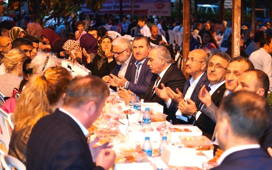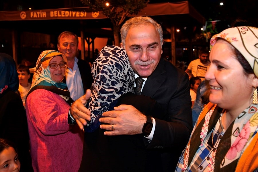 Fatih Belediyesi’nin Ramazan ayı boyunca her gün farklı noktada düzenlediği iftar programının bugünkü adresi Mahmut Celalettin Ökten Parkı oldu. Fatih Belediye Başkanı M. Ergün Turan’ın ev sahipliğindeki iftar programına Gençlik ve Spor eski Bakanı ve Ak Parti Milletvekili Osman Aşkın Bak, Ak Parti Fatih İlçe Başkanı Orhan Narin, Kızılay Fatih Şubesi Başkanı Mustafa Türk, belediye başkan yardımcıları, meclis üyeleri ve vatandaşlar katıldı. İftar öncesi alana gelen Başkan Turan, masaları tek tek dolaşarak, iftara katılanlarla sohbet etti. Ezanın okunmasıyla birlikte binlerce vatandaş aynı sofrada orucunu açarak Ramazan’ın ruhunu yaşadı.