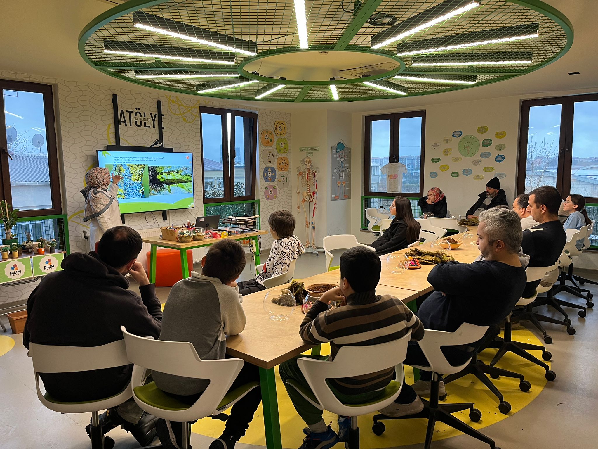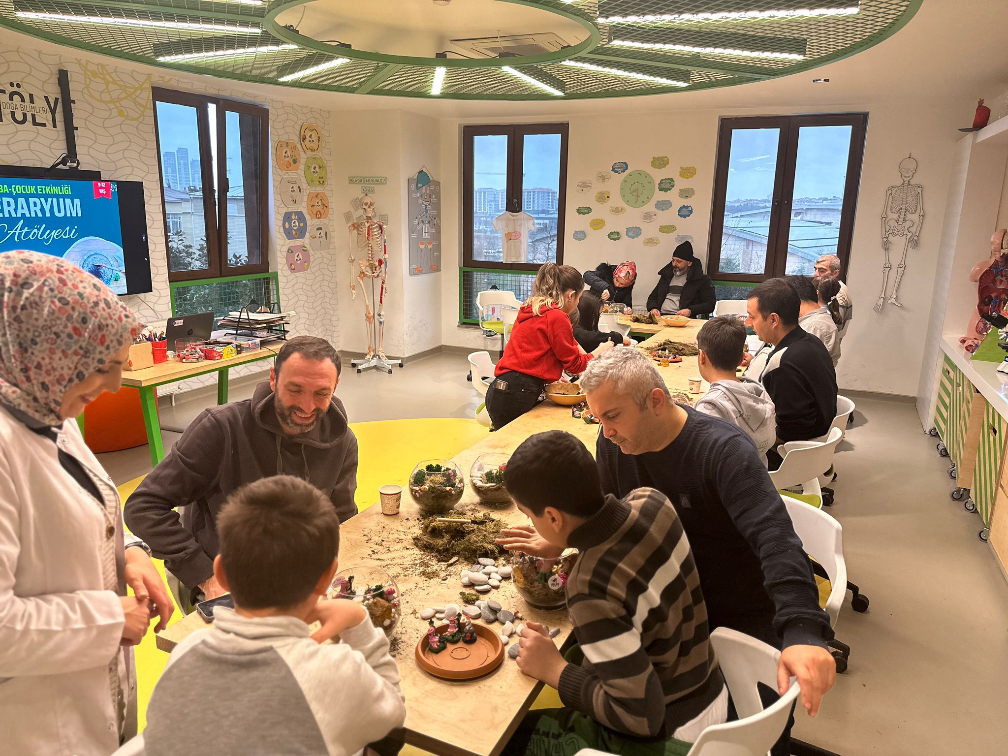 Yarıyıl tatili etkinlikleri kapsamında Bilim Fatih'te düzenlenen Teraryum Atölyesi doğa bilimlerine ilgi duyan baba ve çocukları için keyifli bir etkinlik sunuyor. Atölye katılımcıları toprağın oluşumunu ve katmanlarını detaylı bir şekilde öğrenerek toprağın ekosistem içindeki önemini keşfediyorlar. Etkinlik kapsamında katılımcılar toprağın katmanlarını modelleyip kendi teraryumlarını oluşturarak interaktif bir öğrenme deneyimi yaşıyorlar. Bu sayede yaşadığımız dünyanın karmaşıklığını anlamak ve doğa bilimleriyle daha yakından tanışmak mümkün oluyor. Etkinlik babalar ve çocukları tarafından ilgiyle takip ediliyor.