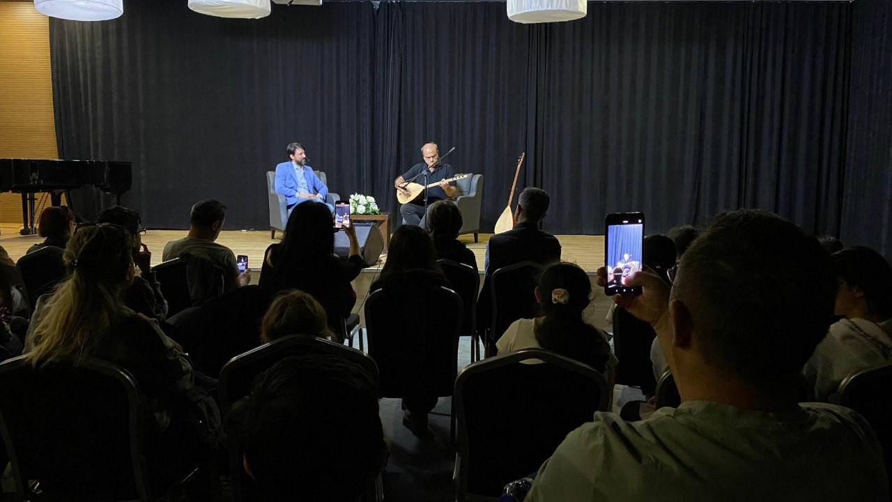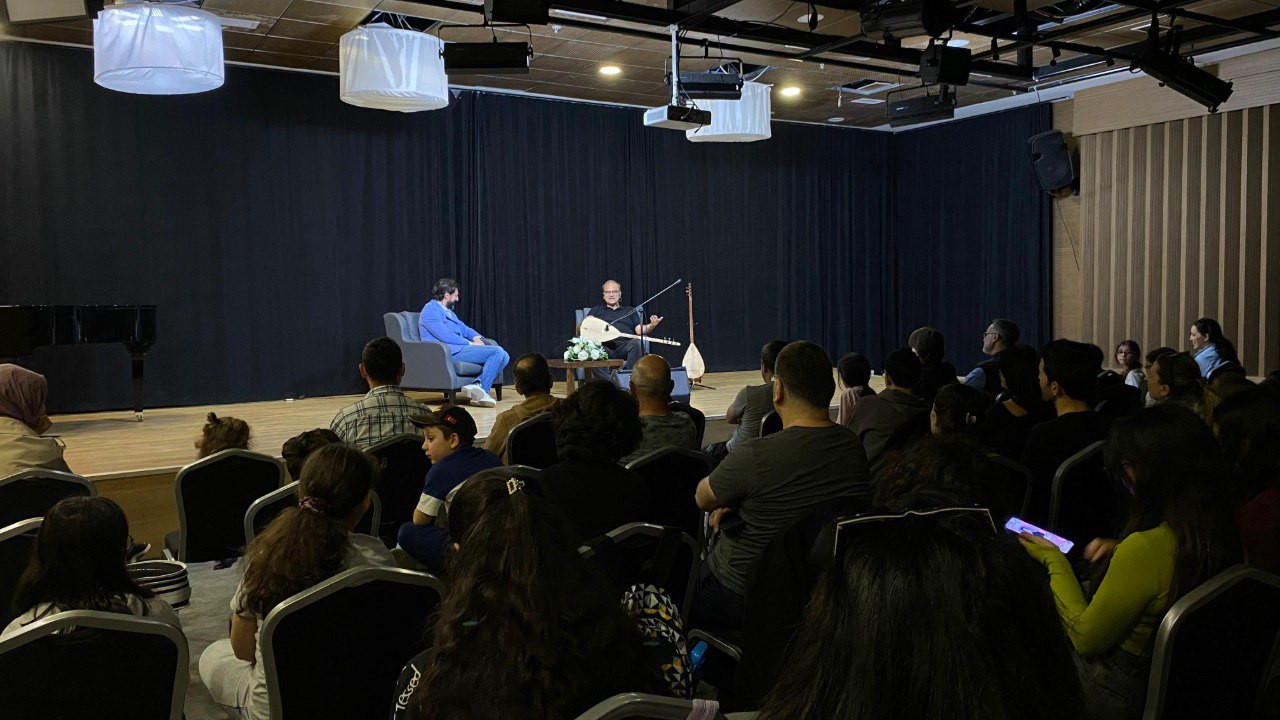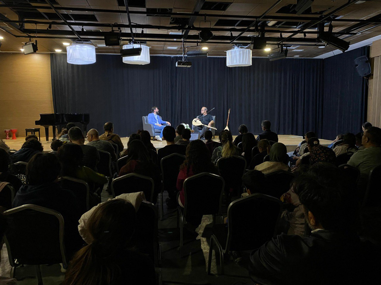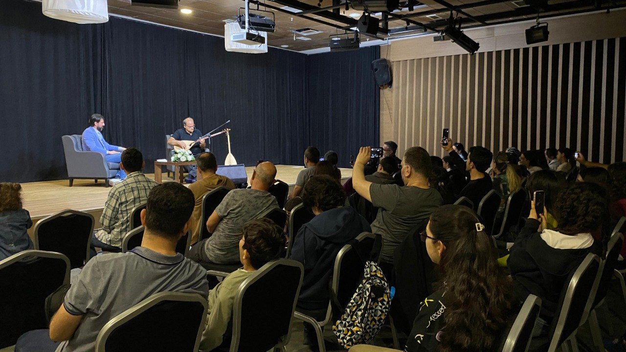 Programın en dikkat çeken bölümlerinden biri ise uygulamalı anlatım kısmıydı. Akdeniz, bağlamadaki tavır farklarını, yörelere özgü çalma tekniklerini ve melodik yapıları sahnede doğrudan örneklendirerek aktardı. Hem teorik bilgilerin hem de canlı performansın iç içe geçtiği bu bölüm katılımcılar tarafından ilgiyle takip edildi. Öğrenciler ustaya sorular yönelterek bağlama eğitimi sürecine dair birebir bilgi alma imkanı buldu.