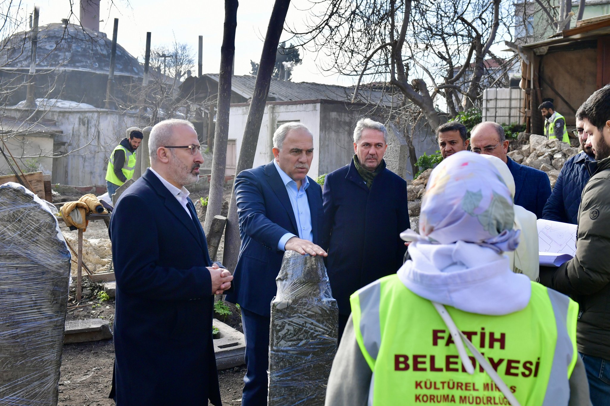 Fatih Belediye Başkanı M. Ergün Turan, Bıçakçı Alaattin Camii Haziresi'nde yapılan çalışmaları inceledi ve ecdat yadigarı eserlere sahip çıkmanın önemini vurguladı.