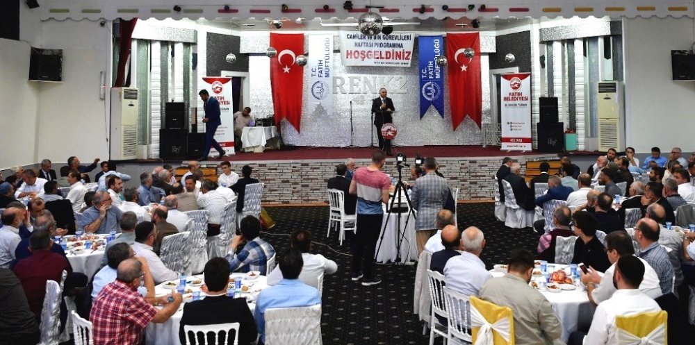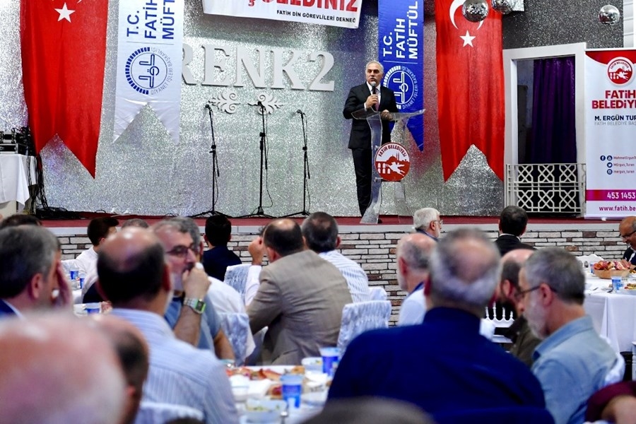 Program dâhilinde düzenlenen akşam yemeğine Fatih Belediye Başkanı M. Ergün Turan, Fatih İlçe Müftüsü Vehap Kapıcıoğlu, Fatih Belediyesi Başkan Yardımcıları ile ilçede görev yapmakta olan din görevlileri ve aileleri katıldı. Programda konuşan Başkan Turan, Fatih’te görev yapmanın çok ayrı bir şeref olduğunu belirterek, ‘Fatih hasbelkader inşa edilmiş bir yer değil. Buradaki hiç bir medrese, cami, mektep ya da mescit tesadüfen yapılmamıştır. Bunu tarihi kaynaklarımız ispatlamaktadır. Bu eserlere sahip çıkmak da hepimizin asli görevidir’ dedi.