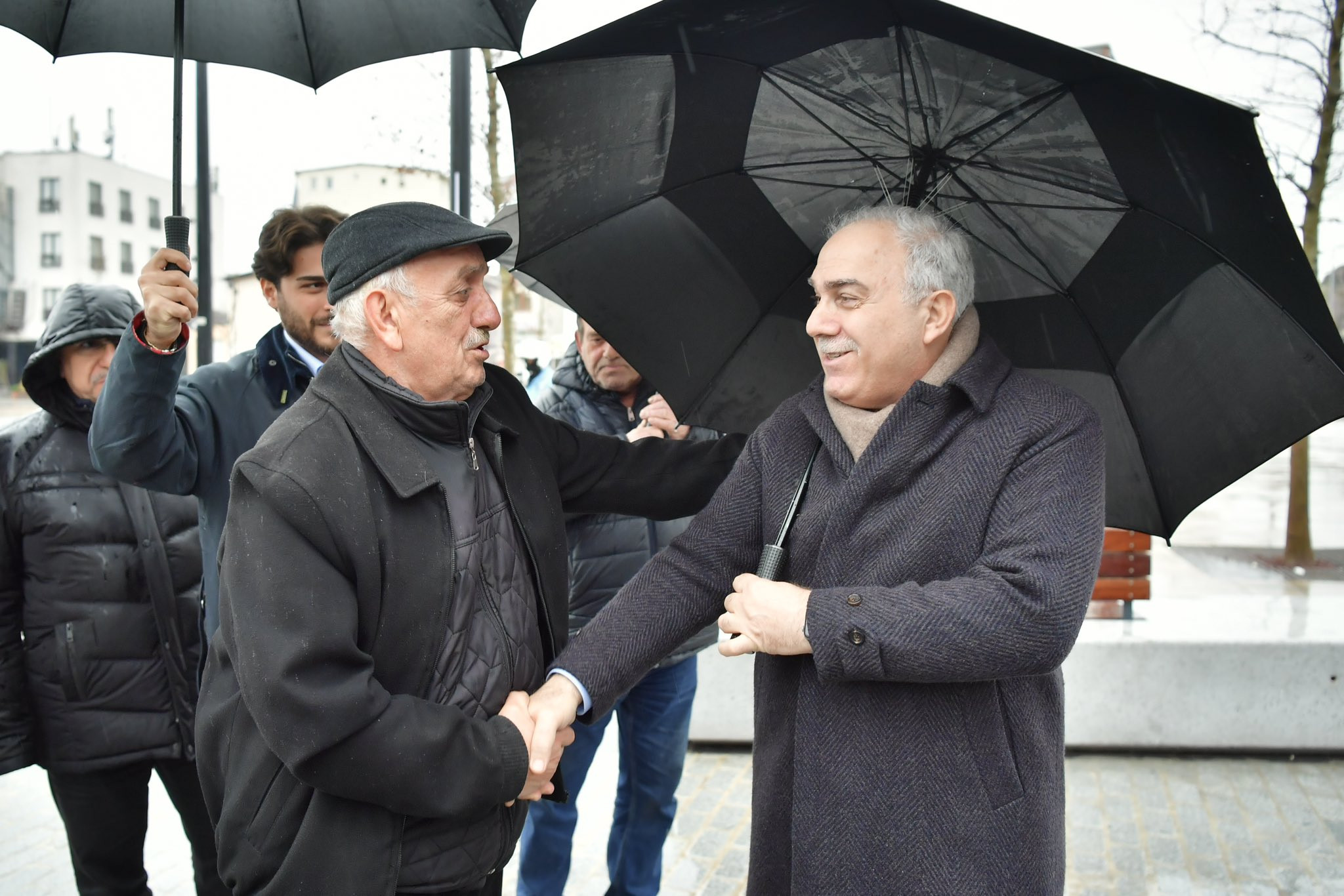Fatih Belediye Başkanı M. Ergün Turan, ilçe genelinde sürdürdüğü saha ziyaretleri kapsamında yağmurlu ve bereketli bir günde Topkapı Kaleiçi Meydanı’nda incelemelerde bulunarak hemşehrileriyle buluştu. Meydanda bulunan vatandaşlarla sohbet eden Başkan Turan, yürütülen çalışmaların geldiği aşamayı yerinde değerlendirirken, alanın Fatih’in sosyal yaşamına kazandıracağı katkılara ilişkin kapsamlı değerlendirmelerde bulundu.