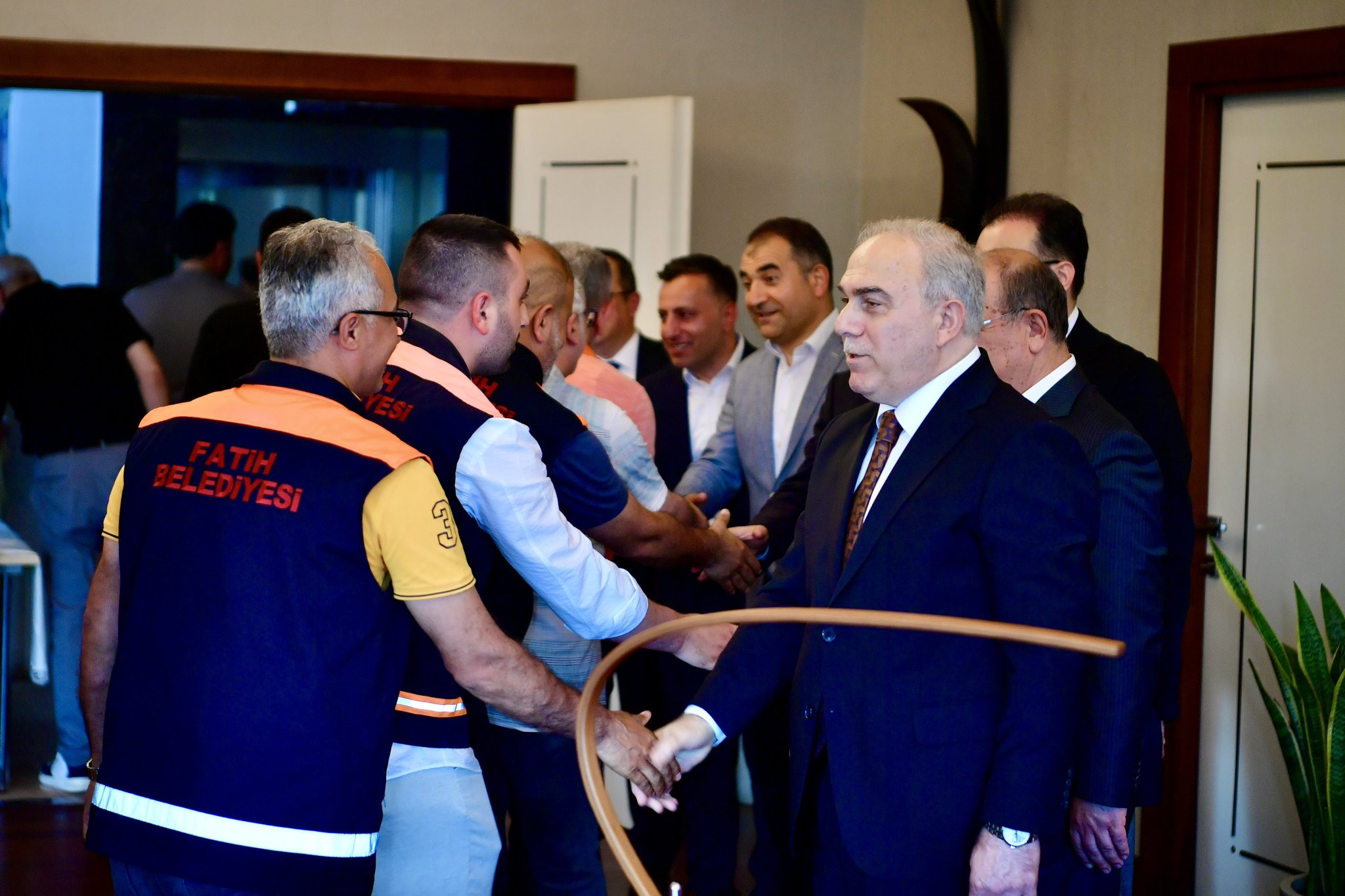 Fatih Belediye Başkanı M. Ergün Turan, Kurban Bayramı vesilesiyle belediye çalışanlarıyla bir araya gelerek hem bayramlarını kutladı hem de ilçede yürütülen hizmetlerde gösterdikleri özveri ve gayretlerinden dolayı teşekkür etti. Belediyeciliğin bir ekip işi olduğunu vurgulayan Başkan Turan, tüm çalışanların emeğinin kıymetli olduğunu belirtti.