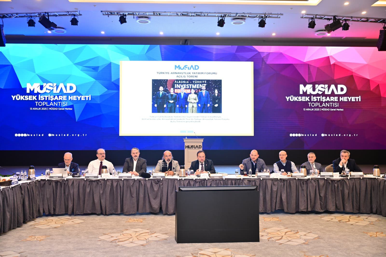 Fatih Belediye Başkanı M. Ergün Turan, iş dünyasının önde gelen temsilcilerini bir araya getiren MÜSİAD Yüksek İstişare Heyeti Toplantısı’na katıldı. MÜSİAD Genel Başkanı Burhan Özdemir’in ev sahipliğinde düzenlenen toplantıda, küresel ekonomide yaşanan güncel gelişmeler, bölgesel ekonomik dinamikler ve Türkiye ekonomisinin mevcut durumu çok boyutlu bir çerçevede değerlendirildi.