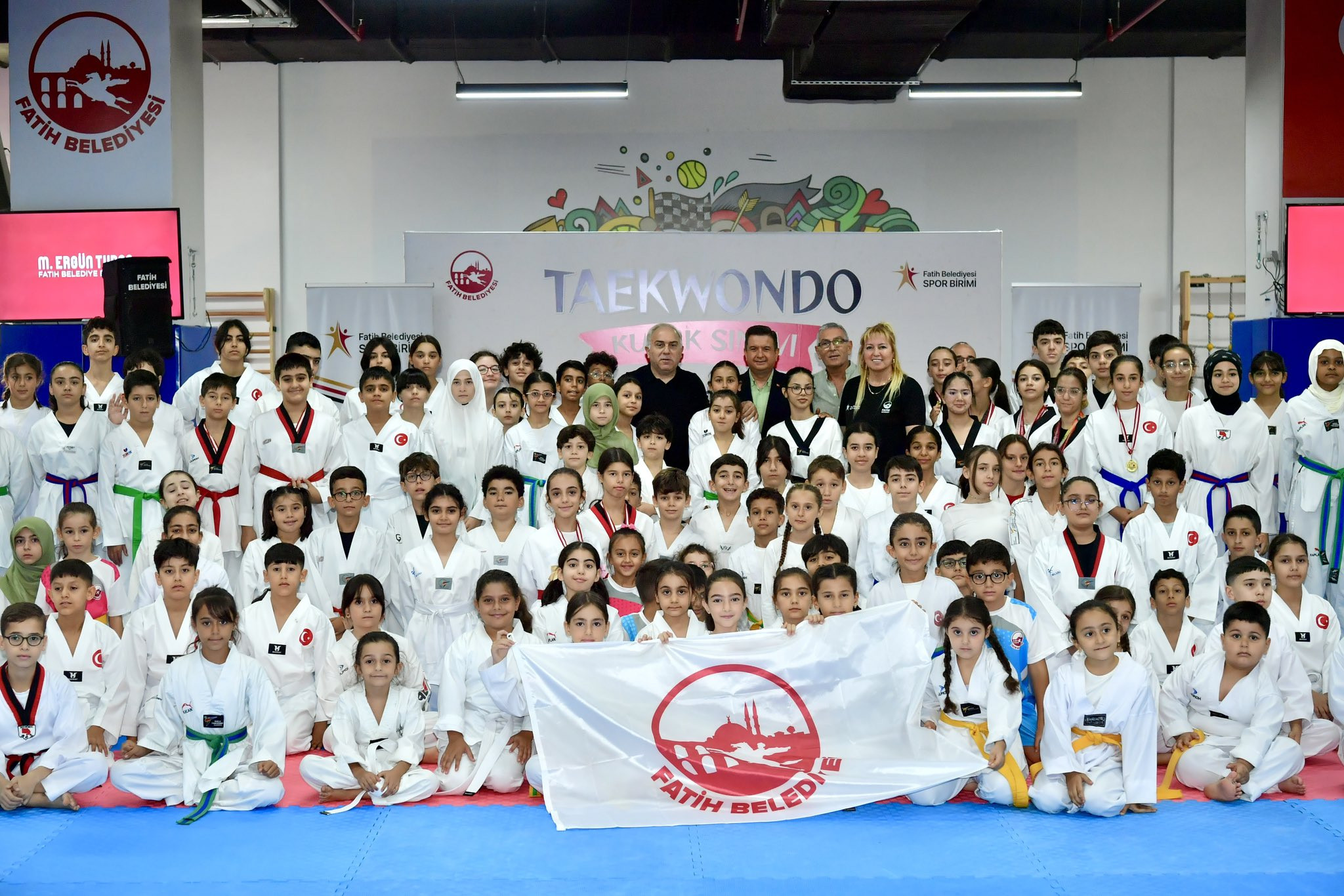 Fatih Belediye Başkanı M. Ergün Turan’ın katılımıyla Neslişah Sultan Spor Merkezi’nde düzenlenen Taekwondo Kuşak Sınavı’nda genç sporcularımız disiplin, azim ve özverileriyle göz doldurdu. Başkan Turan, lisanslı 150 sporcunun başarılarıyla gurur duyduklarını belirtti.
