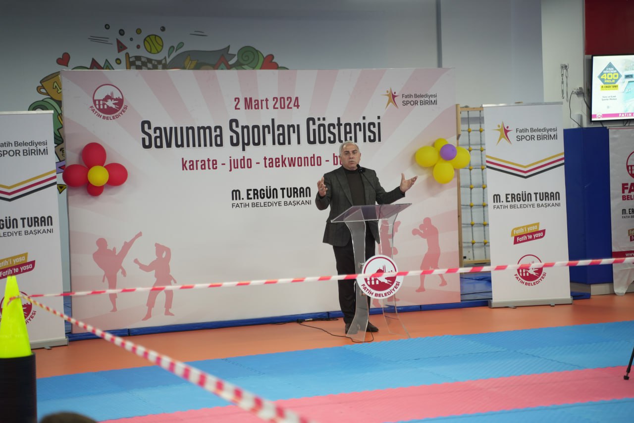 Gençlik ve Spor Müdürlüğü tarafından Neslişah Sultan Spor Merkezi’nde düzenlenen “Savunma Sporları Performans Gösterisi” Fatih Belediye Başkanı M. Ergün Turan’ın katılımıyla gerçekleştirildi. Başkan Turan, Türkiye’nin mimarı gençler için yatırımlarının devam edeceğini vurguladı.