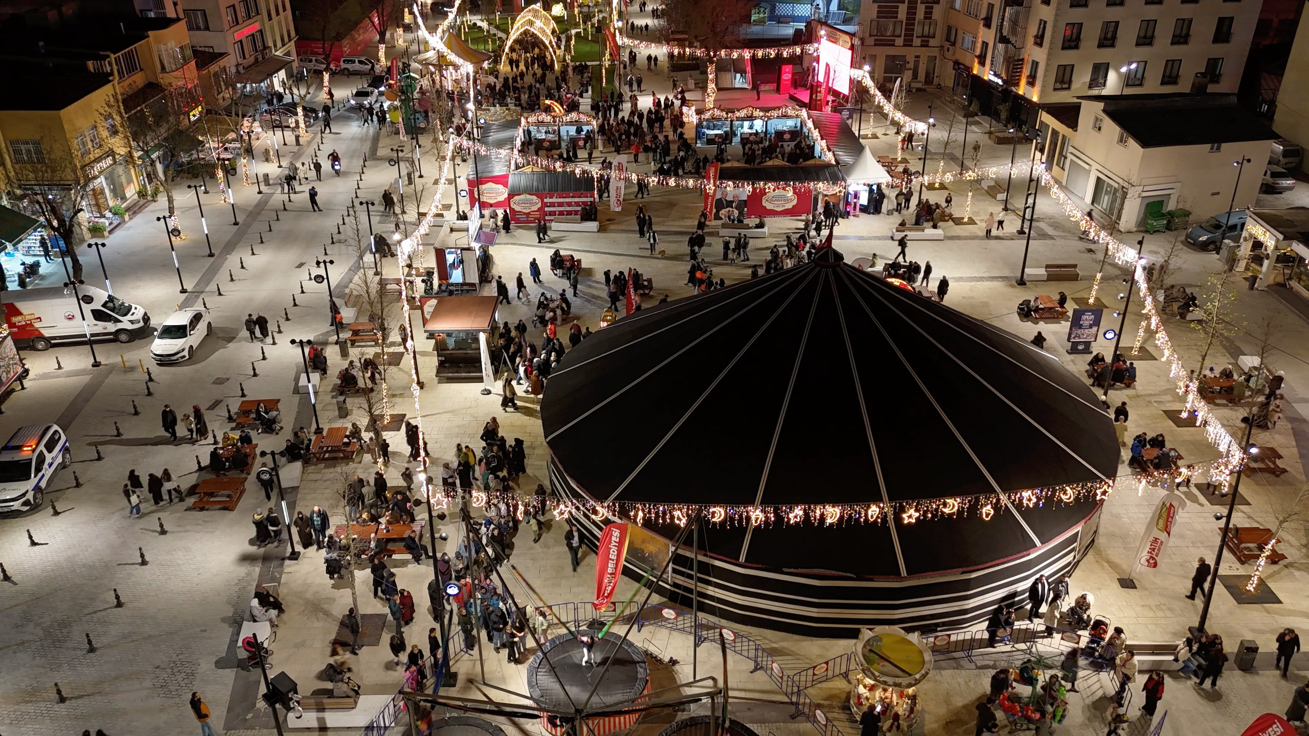 İftarın ardından meydanda oluşan hareketlilik, Ramazan ayının birleştirici ruhunu güçlü bir şekilde yansıtıyor. Aileleriyle birlikte meydanı ziyaret eden hemşehrilerimiz, kurulan stantları gezerek vakit geçiriyor, dostlarıyla sohbet ediyor ve Ramazan akşamlarının manevi atmosferini birlikte paylaşıyor. Çocuklarımızın neşesi, ailelerin sohbeti ve esnafımızın katkısıyla meydanda oluşan bu canlılık, tarihî yarımadanın köklü sosyal hayat geleneğini günümüz şehir yaşamıyla buluşturan güçlü bir buluşma ortamı oluşturuyor.