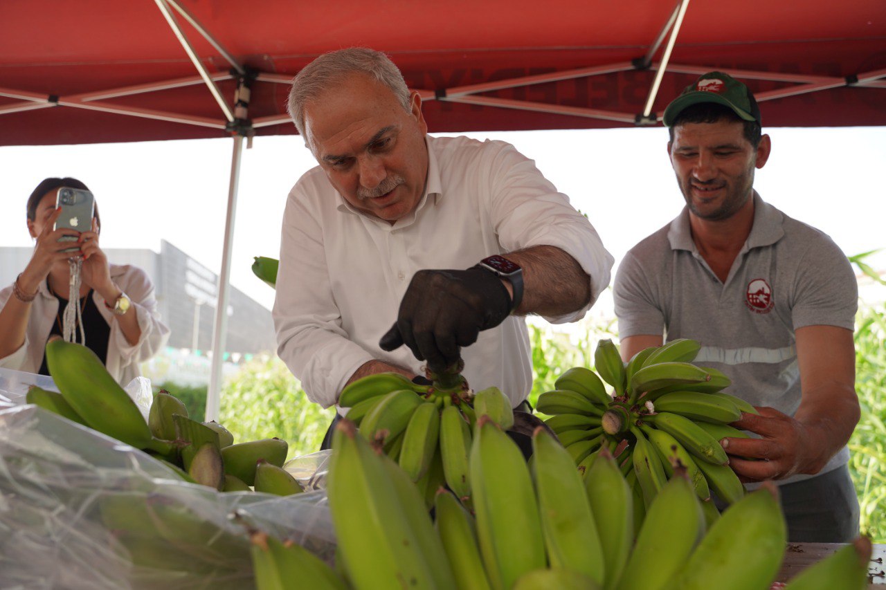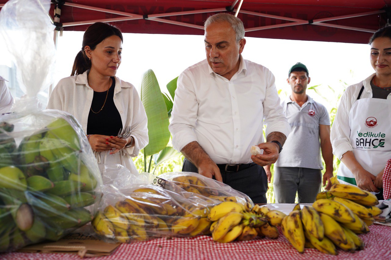 Başkan Turan, Yedikule Bahçe'de Yapılan Muz Hasadına Katıldı