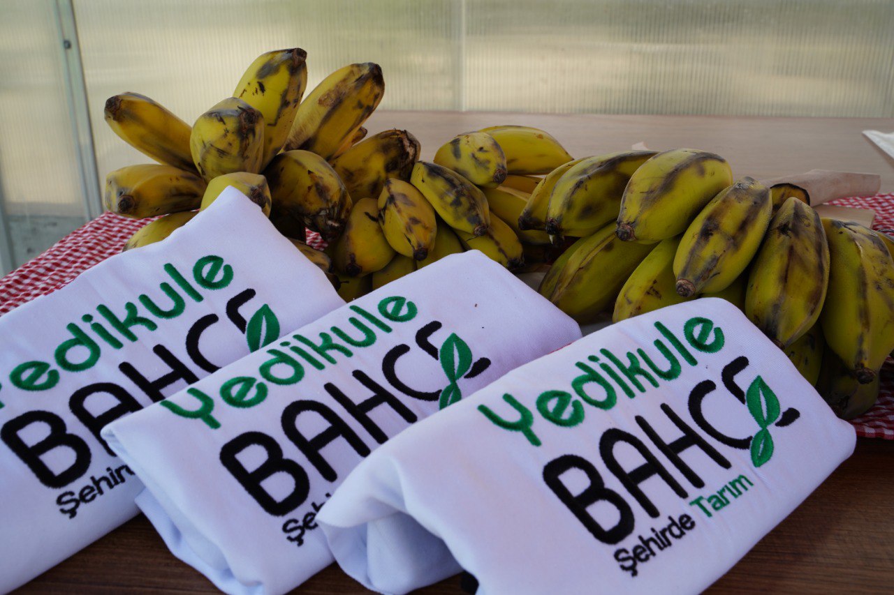 Fatih Belediyesi'nin şehirde tarımın geliştirilmesine verdiği önemin simgelerinden Yedikule Bahçe'de muz hasadı yapıldı.