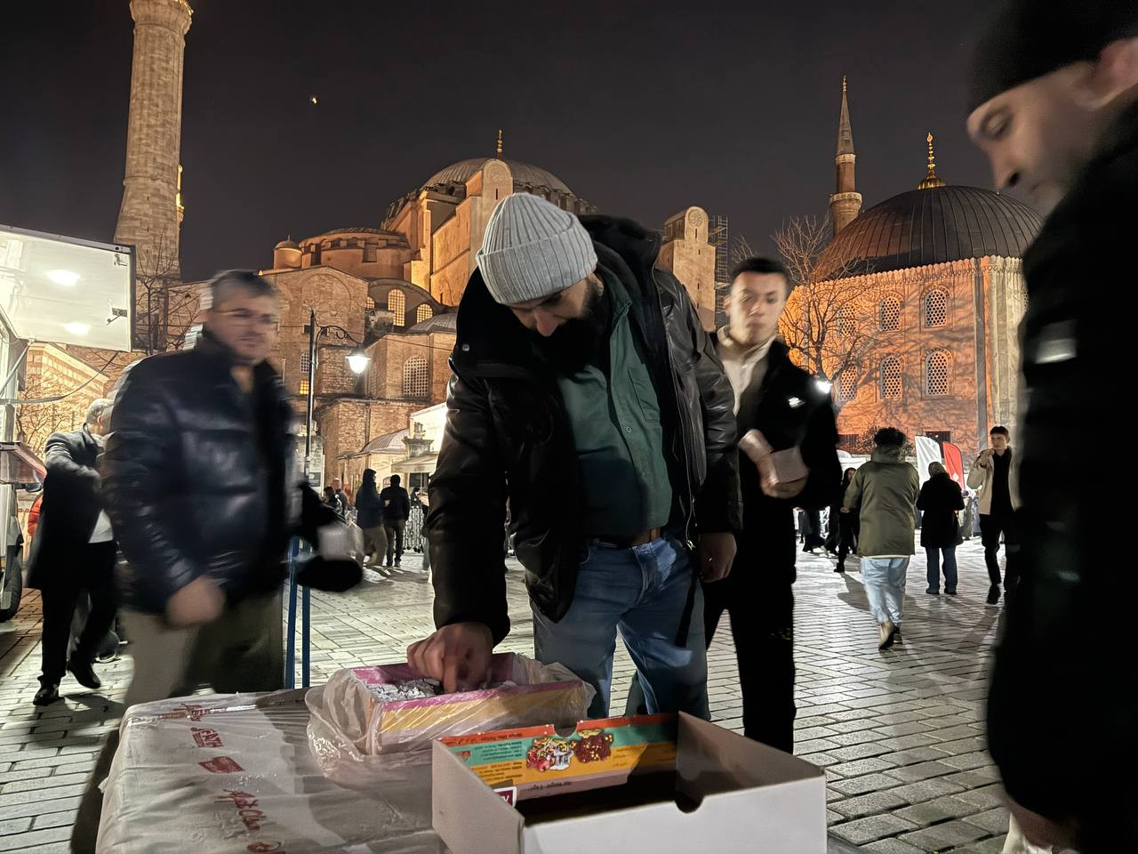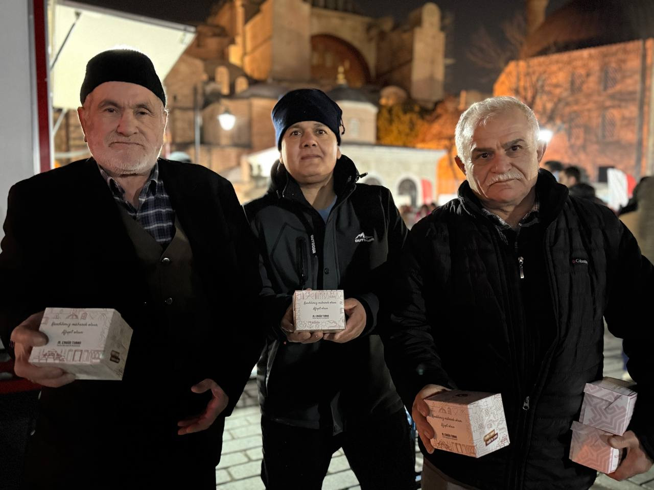 Fatih Belediyesi ekipleri, Berat Kandili dolayısıyla Ayasofya-i Kebir Cami-i Şerifi’nde vatandaşlarla bir araya gelerek kandil simidi ikramında bulundu.