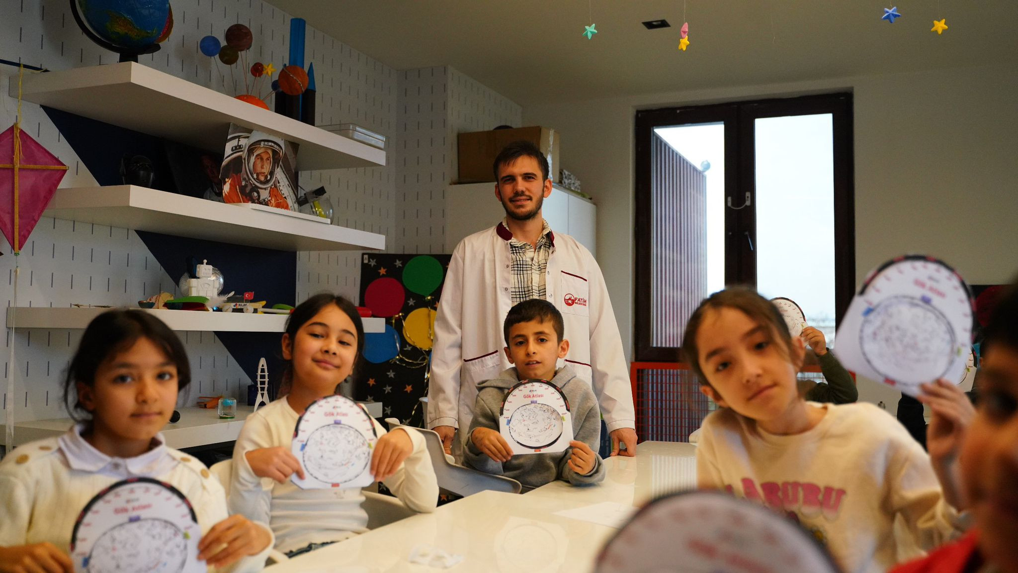 Astronomi atölyesinde öğrenciler evrenin derinliklerine inerek gezegenler, yıldızlar ve galaksiler hakkında bilgi sahibi oluyor. Gökyüzünü gözlemlemeye yönelik uygulamalarla zenginleştirilen bu atölye gençlerin astronomi ve uzay bilimine olan ilgisini artırmayı hedefliyor. Ayrıca uzay araştırmalarına yönelik projelerle öğrenciler hem bilimsel hem de teknolojik gelişmelere katkıda bulunabilecek bir bakış açısı kazanıyorlar.