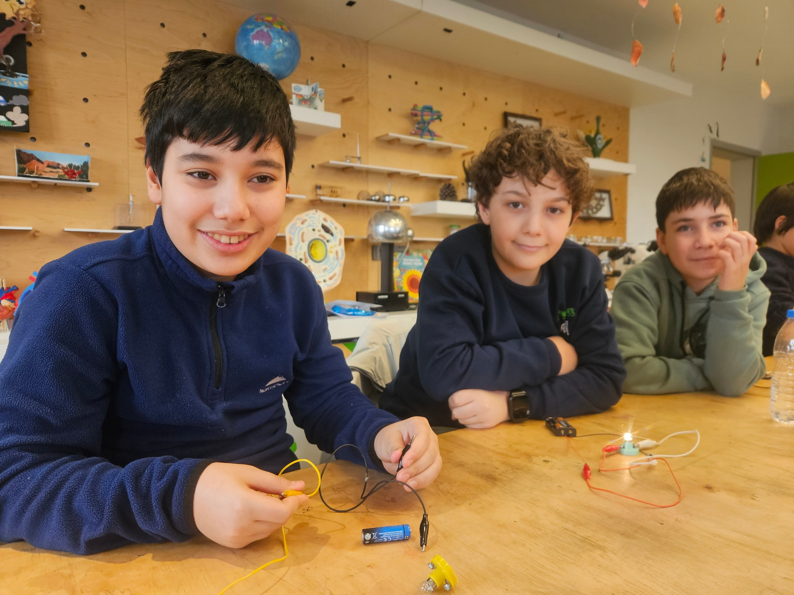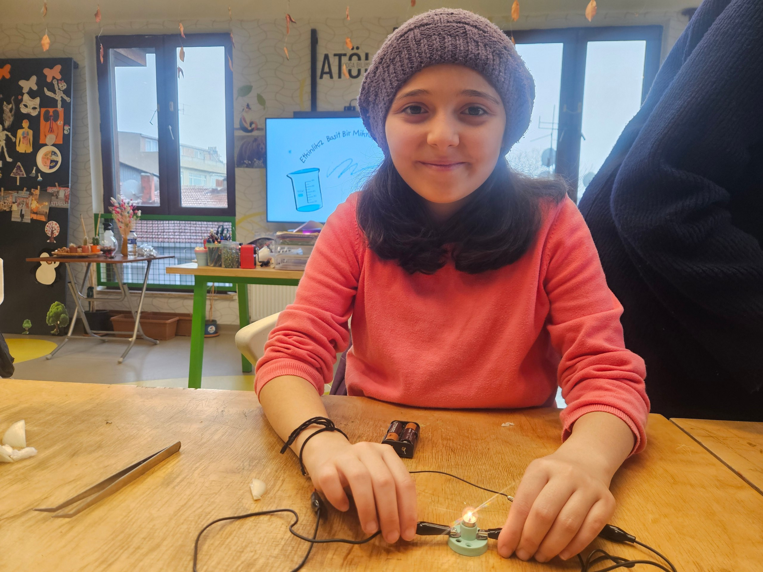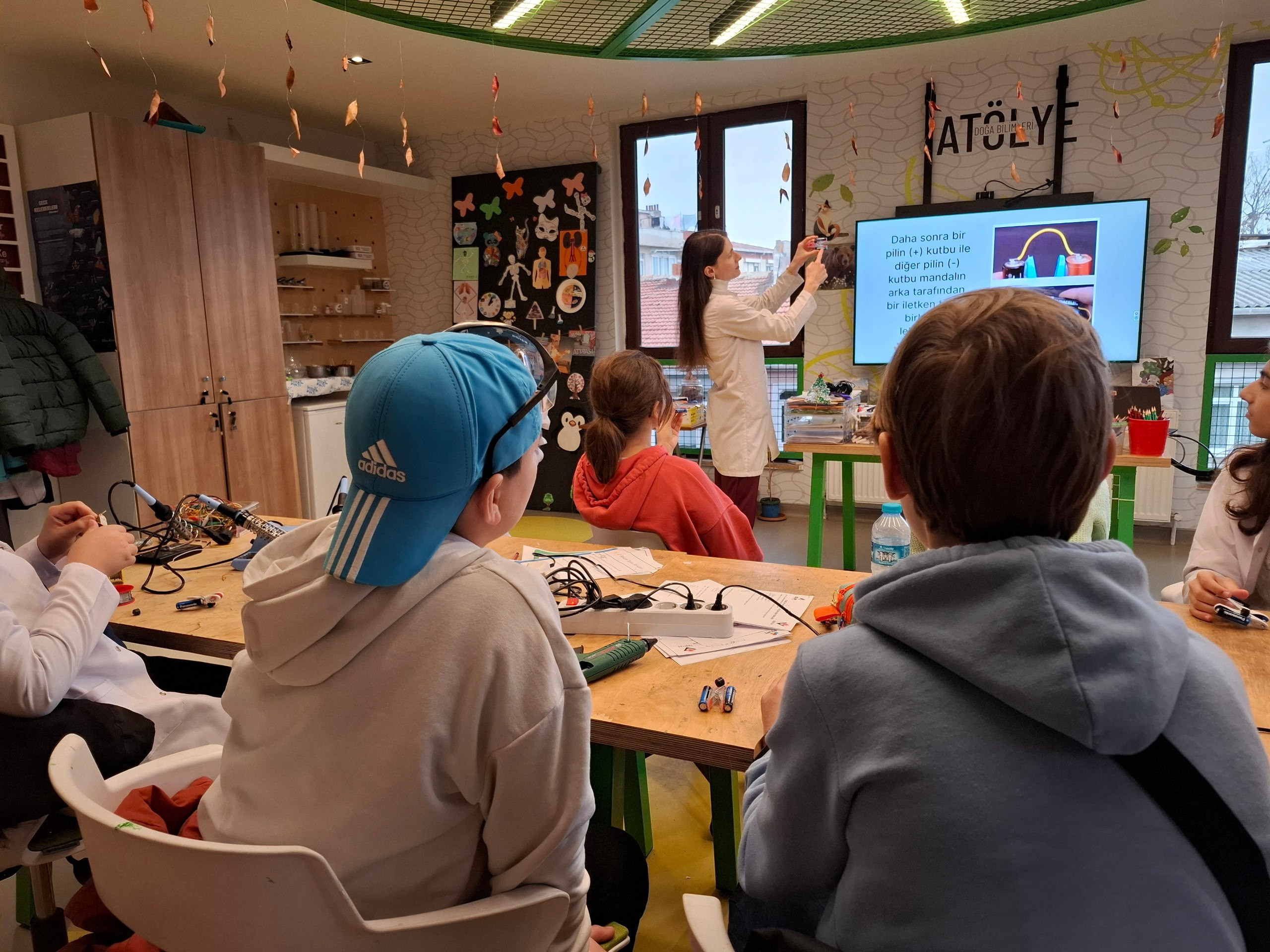 Programın dikkat çeken aşamalarından biri, fizik ve teknoloji uygulamaları kapsamında yürütülen elektrik ve devre çalışmaları oldu. Öğrenciler, temel elektrik devrelerini tanıyarak işe başladı; devre elemanlarının görevlerini öğrenerek bir sistemin nasıl çalıştığını adım adım inceledi. Bu çalışmalar kapsamında kapı alarmı sistemi kuran öğrenciler, ses üreten bileşenlerin çalışma prensiplerini öğrendi ve tasarladıkları devreleri işlevsel hâle getirdi.