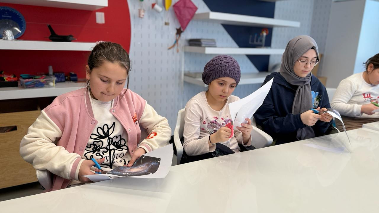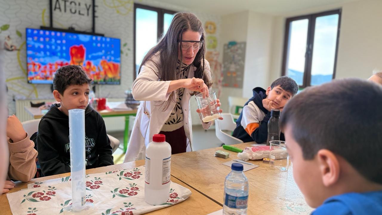 Doğa Bilimleri Atölyesi’nde gerçekleştirilen “Asit mi Yağıyor?” etkinliğinde çocuklar laboratuvar ortamında deney yaparak kimyasal tepkimelerin temelini öğrenme fırsatı buldu. Teknoloji Atölyesi’nde ise robotik kodlama eğitimi sayesinde bilim ve teknolojiyi bir arada deneyimleyen öğrenciler uygulamalı projelerle teknolojiye olan ilgilerini artırdı. Matematik Atölyesi çocuklara simetri ve kesir konularını eğlenceli bir şekilde aktarırken Astronomi Atölyesi’nde düzenlenen “Yükselen Roketim” etkinliği öğrencileri gökyüzünün sonsuz potansiyeliyle tanıştırdı. Tasarım Atölyesi ise akrilik boya, doodle art ve kirigami gibi yaratıcı etkinliklerle çocukların sanatsal yönlerini ön plana çıkardı.