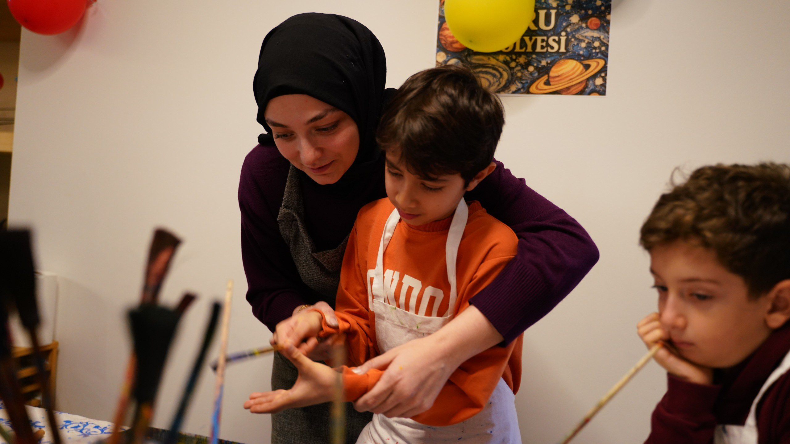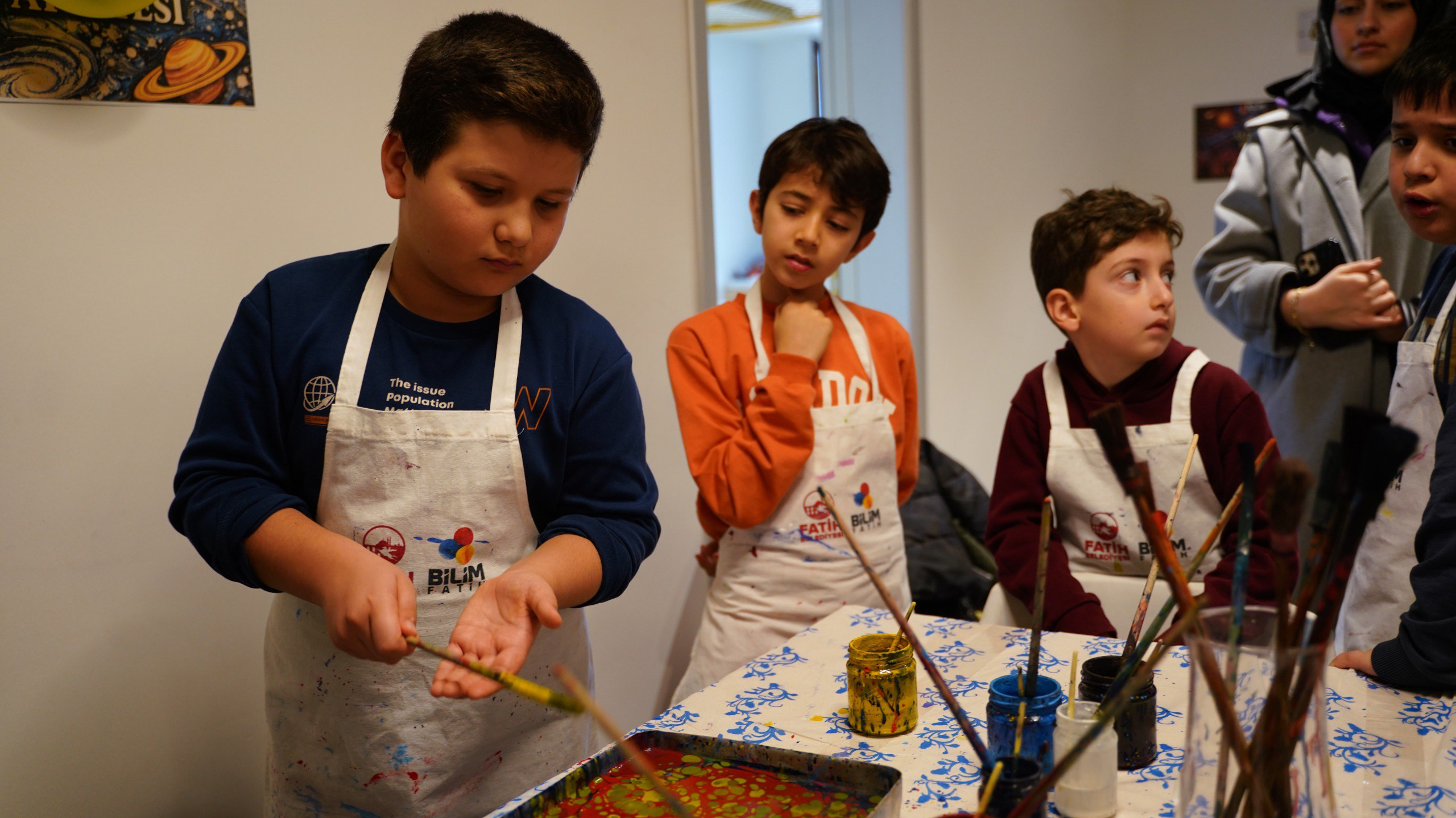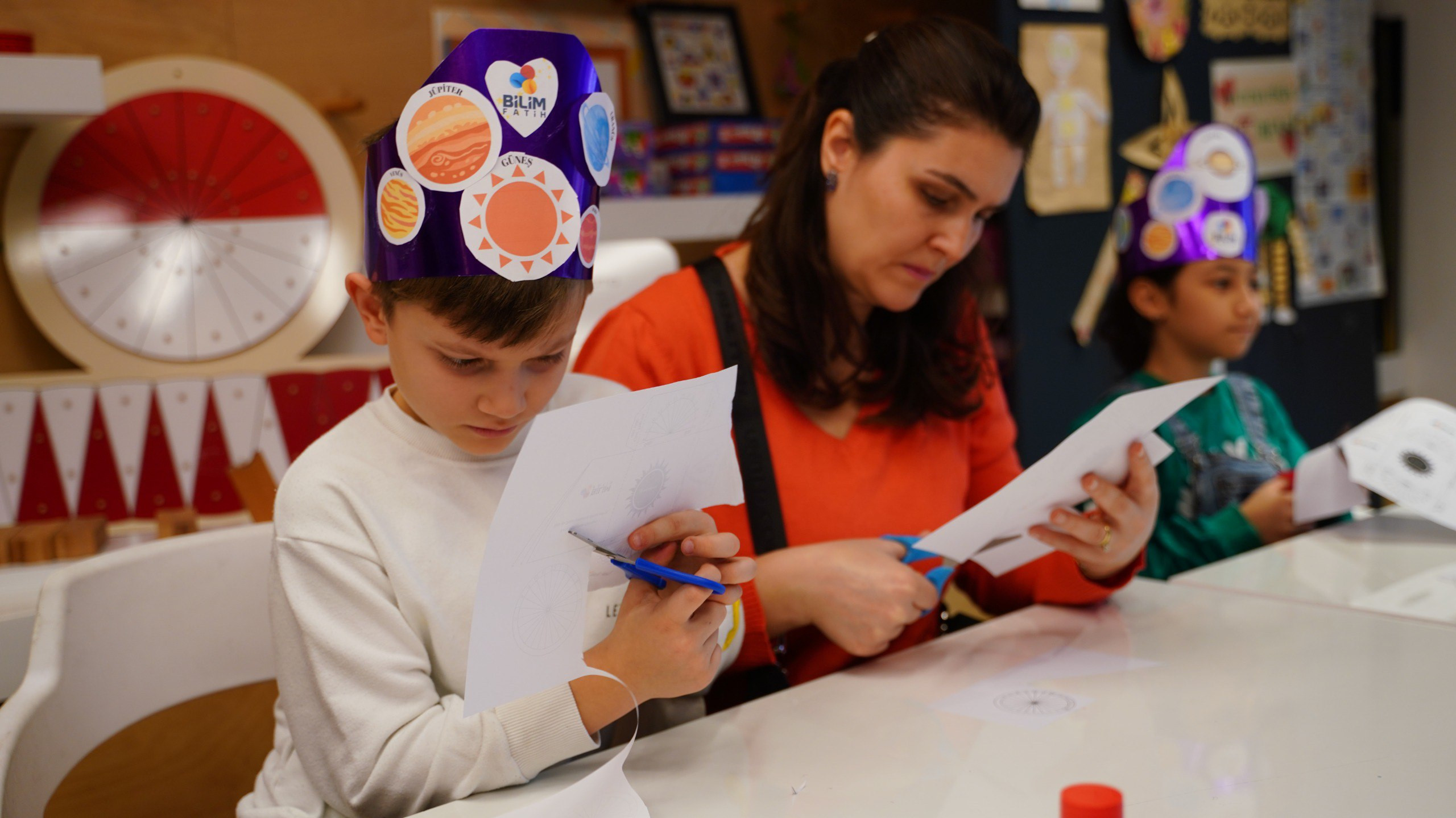 Etkinlik kapsamında gerçekleştirilen ebru çalışmalarıyla galaksi temalı sanatsal üretimler yapıldı. Bilim ve sanatın bir araya geldiği bu uygulamalar, çocukların hayal gücünü desteklerken üretim odaklı düşünmelerini teşvik etti. Galaksi tacı ve güneş saati etkinlikleriyle zaman, ışık ve gökyüzü hareketleri gibi temel astronomi başlıkları eğlenceli ve anlaşılır bir şekilde ele alındı.