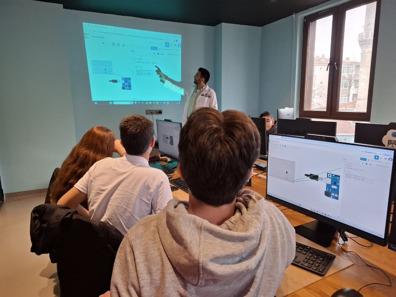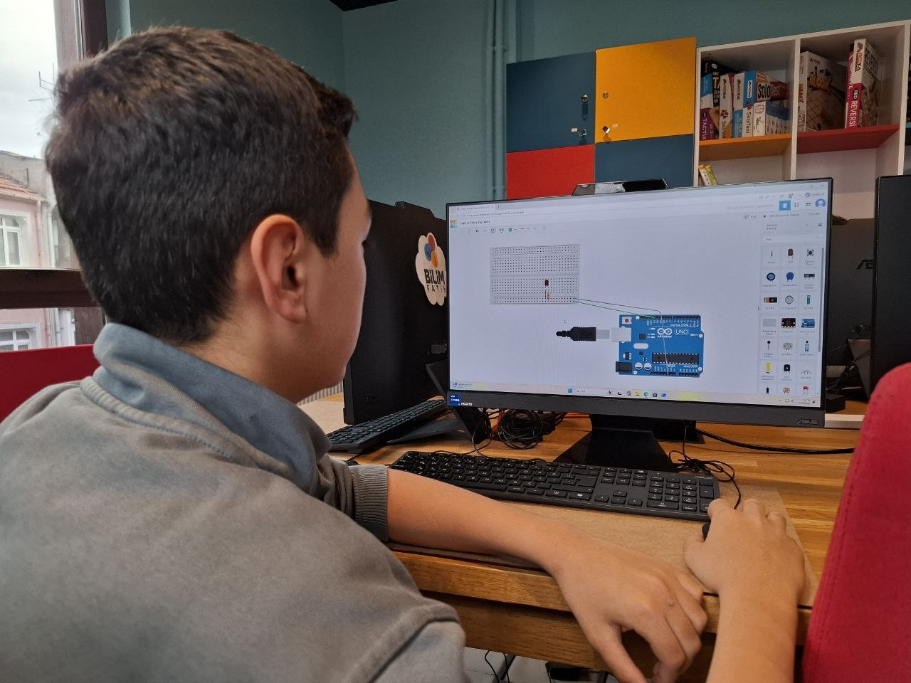 Bilim Fatih’in robotik kodlama ve temel elektronik eğitiminde gençlerimiz, simülasyon tabanlı uygulamalarla devre kurmayı ve kod yazmayı öğrenerek teknoloji üretimine yönelik becerilerini geliştirdi.