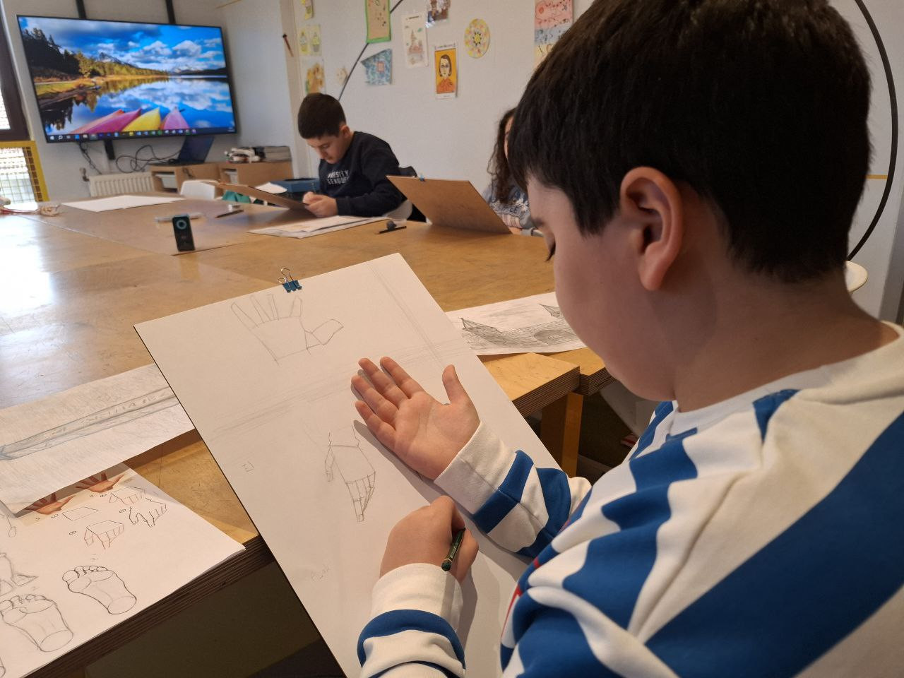 Bu hafta gerçekleştirilen atölye çalışmalarında, öğrencilerin hem analitik hem de üretime dayalı becerilerini destekleyen etkinliklere yer verildi. Tasarım Atölyesi’nde İslam sanatında sıkça kullanılan geometrik desenler üzerinden çalışmalar yapıldı. Öğrenciler, desen kompozisyonları aracılığıyla estetik anlayışı, oran ve simetri kavramlarını inceleyerek görsel düşünme yetkinliklerini geliştirdi.