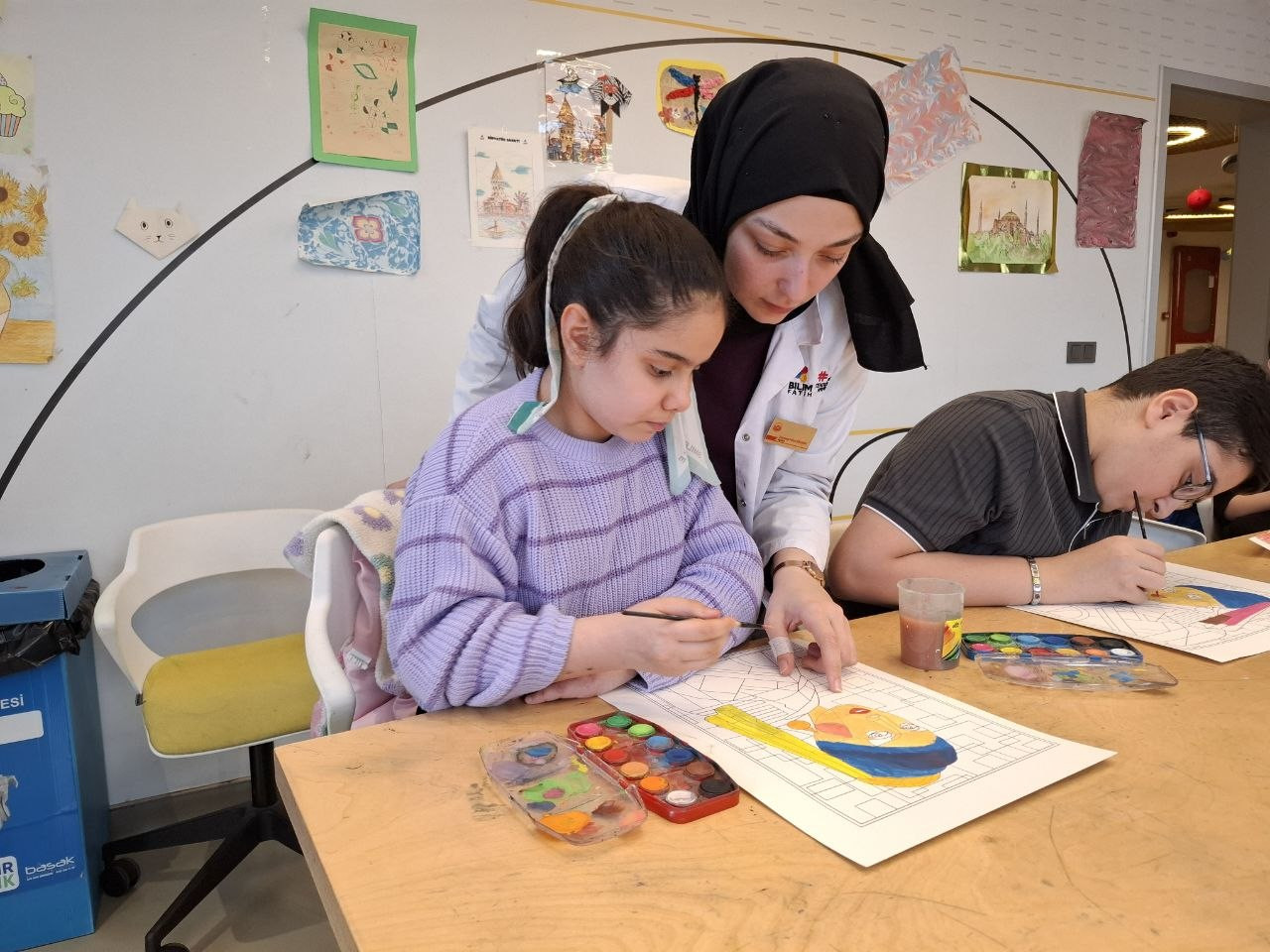 Sanatsal ifade alanında düzenlenen Tasarım Sulu Boya Atölyesi’nde ise öğrenciler, renk bilgisi, ton geçişleri ve kompozisyon kurgusu üzerine çalışmalar gerçekleştirdi. Farklı tekniklerin uygulandığı atölyede katılımcılar, bireysel üretimlerini geliştirirken aynı zamanda görsel anlatım becerilerini güçlendirdi. Bu çalışmalar, öğrencilerin estetik bakış açılarını zenginleştirirken dikkat ve odaklanma süreçlerini de destekledi.