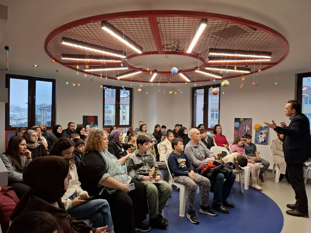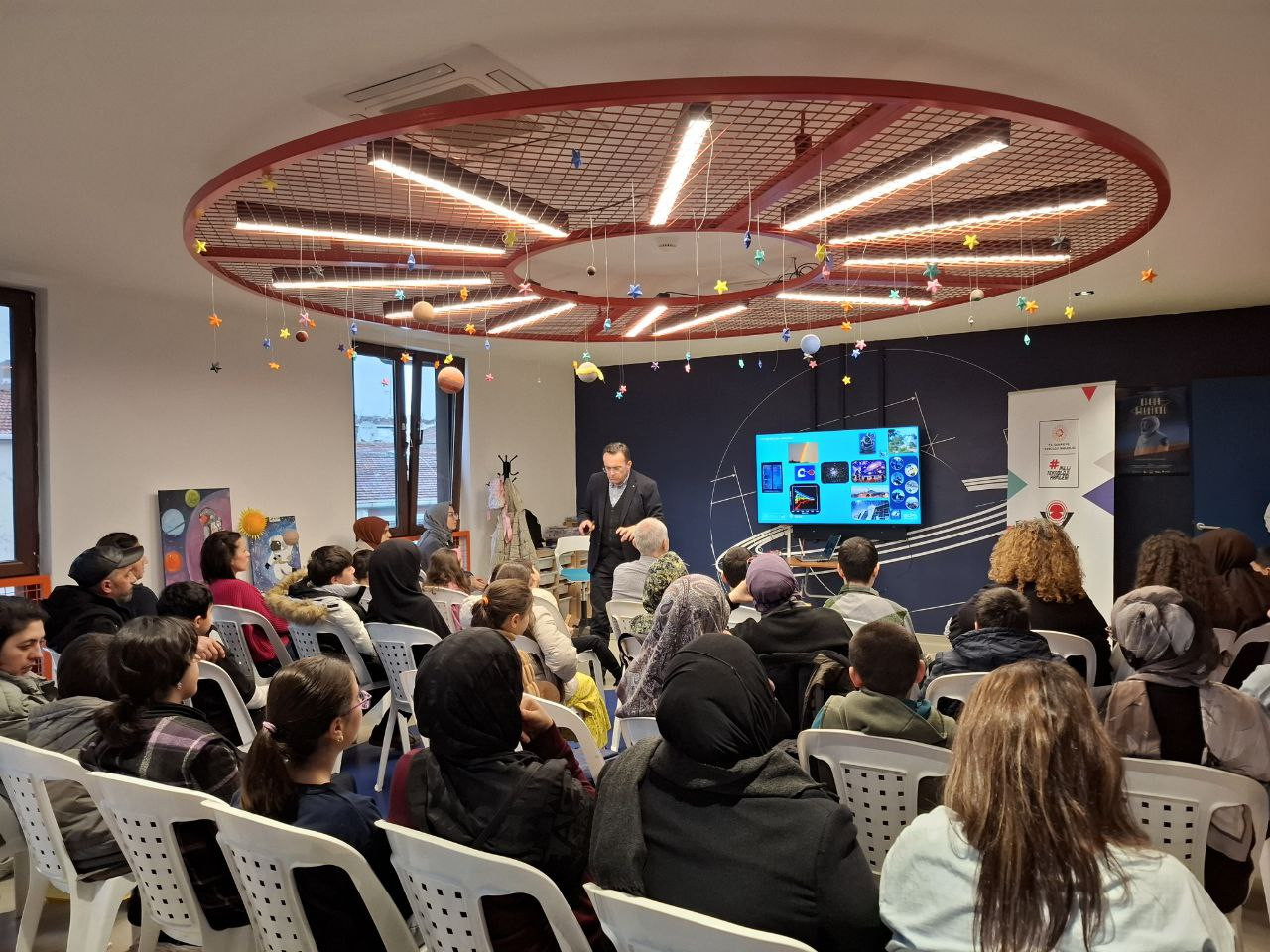 Programın devamında Bilim Fatih ev sahipliğinde düzenlenen “Bilim Söyleşisi – Fotoğraftan Bilgiye, Yıldızdan Gezegene” başlıklı etkinlikte Prof. Dr. Faruk Soydugan öğrencilerle bir araya geldi. Söyleşide bilimsel bilginin nasıl üretildiği, gözlemin ve verinin bilgiye dönüşme süreci ile astronomi alanına dair temel yaklaşımlar ele alındı. Öğrenciler, bilimsel çalışmaların arka planına ilişkin doğrudan bilgi edinme ve merak ettikleri konulara dair sorular yöneltme imkânı buldu.