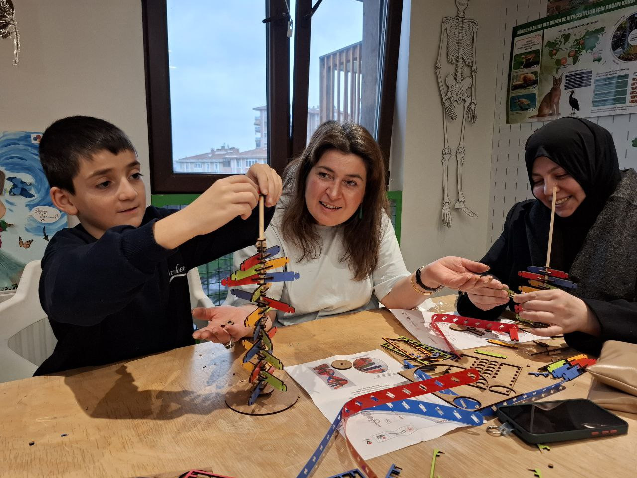 Akademik sürecin ardından düzenlenen veli–çocuk atölyeleriyle öğrenme deneyimi aile katılımıyla desteklendi. Atölye çalışmaları sayesinde öğrenciler, öğrendikleri bilgileri aileleriyle birlikte uygulama fırsatı buldu. Bu yaklaşım, öğrenmenin yalnızca sınıf ortamıyla sınırlı kalmamasını sağlarken, ailelerin de sürece aktif olarak dahil olmasına imkân tanıdı.