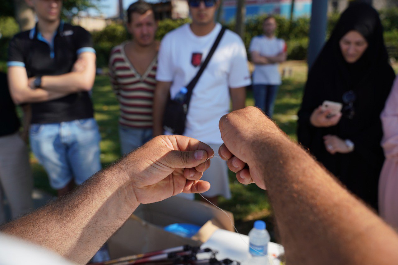 Balat Şair Nedim Parkı‘nda düzenlenen “Sağlığa Olta” etkinliğinde katılımcılar öncelikle balık tutmanın inceliklerini öğrendi, daha sonra da oltalarının başına geçti. Doğayla iç içe geçen etkinlikte büyük bir heyecanla oltalarını çeken katılımcılar bir hayli eğlendi ve ortaya güzel fotoğraflar çıktı.