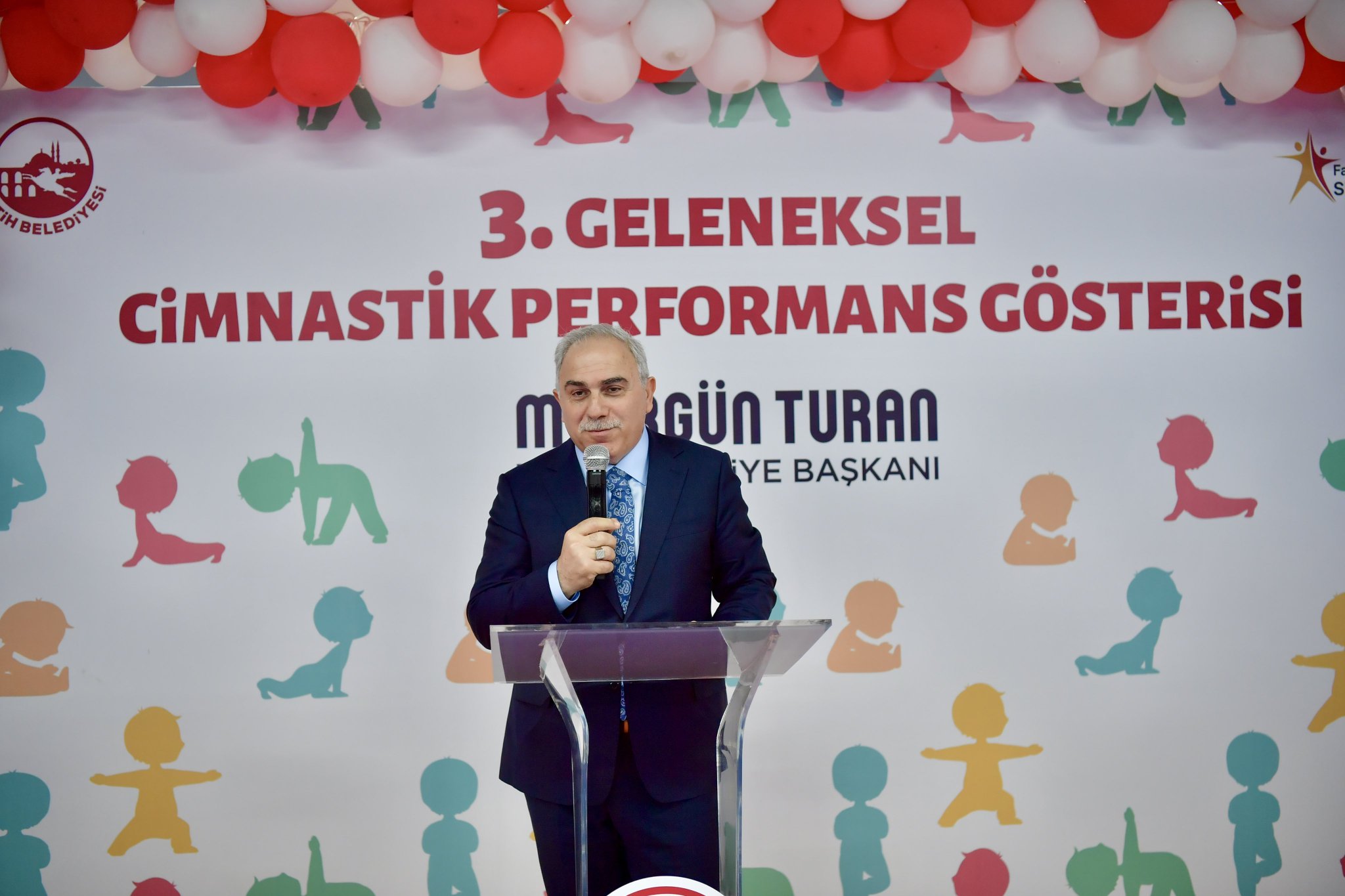 Cimnastik Performans Gösterisi Fatih Belediye Başkanı M. Ergün Turan'ın katılımıyla Neslişah Sultan Kültür Merkezi'nde gerçekleştirildi. Başkan Turan, geleceğin milli sporcularının ve ay yıldızlı dünya şampiyonlarının Fatih'ten çıkacağını belirtti.