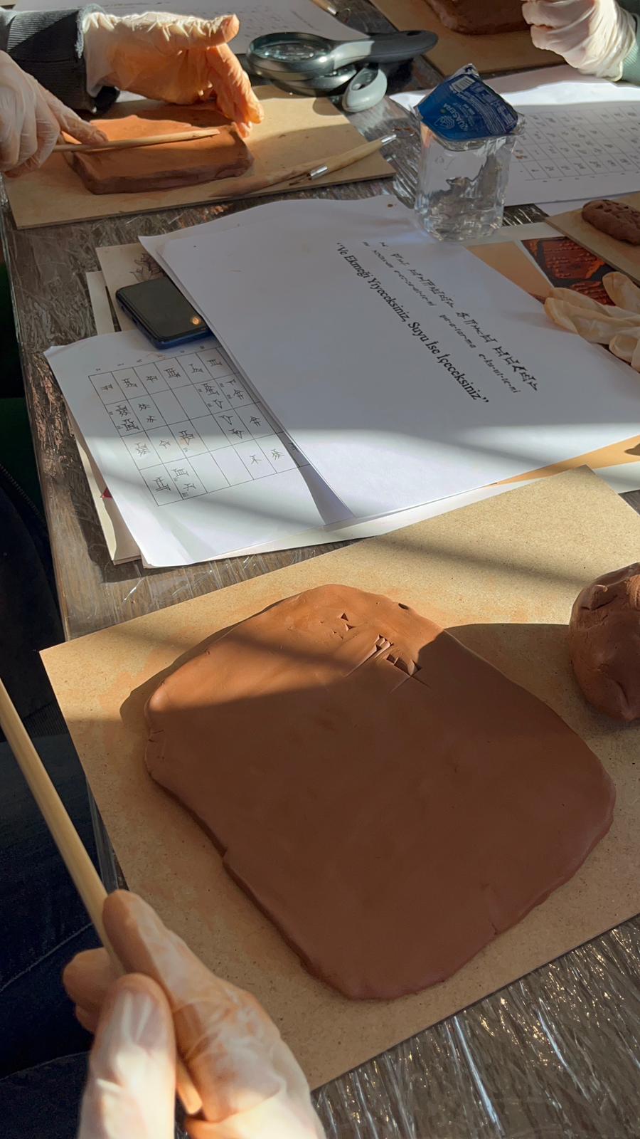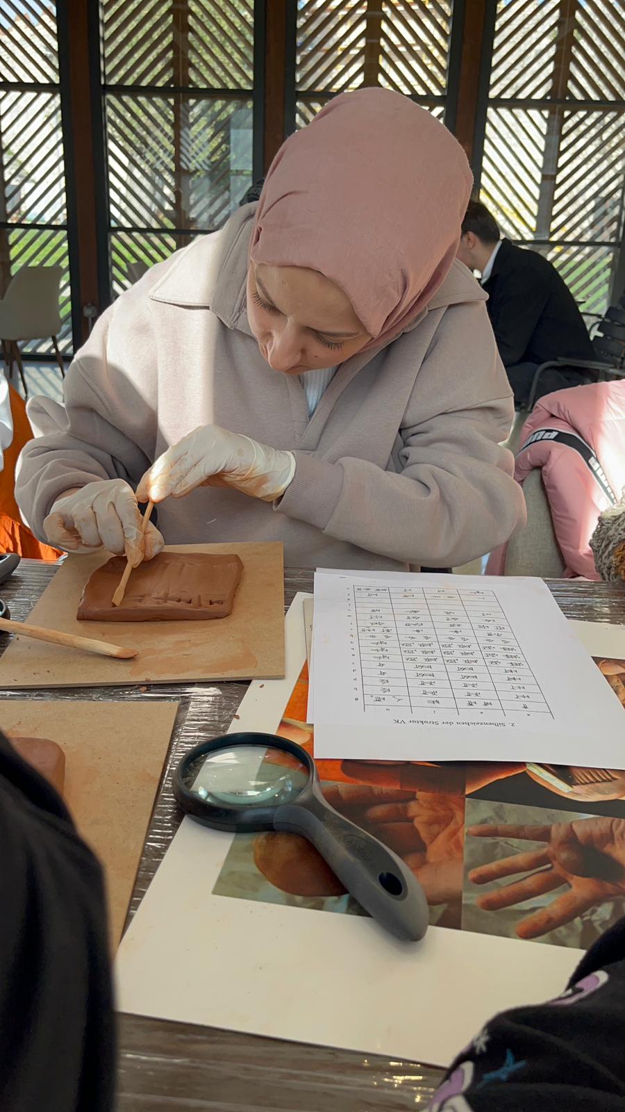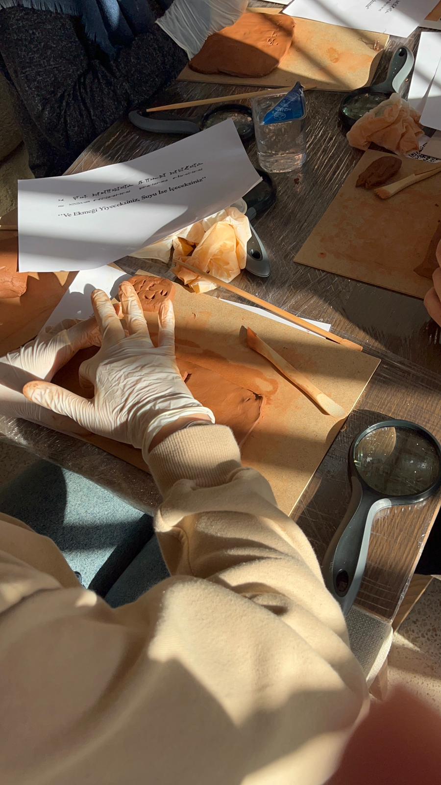 Yedikule Hisarı'nda düzenlenen Çivi Yazısı Atölyesi katılımcılara bu antik sanatı kendi elleriyle uygulama fırsatı sunuyor.