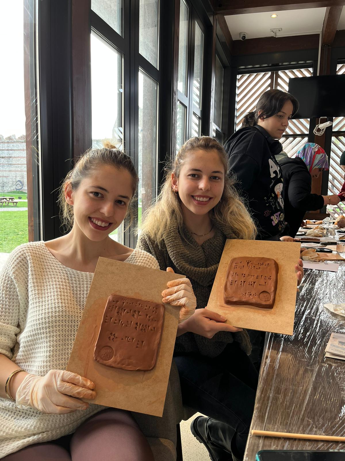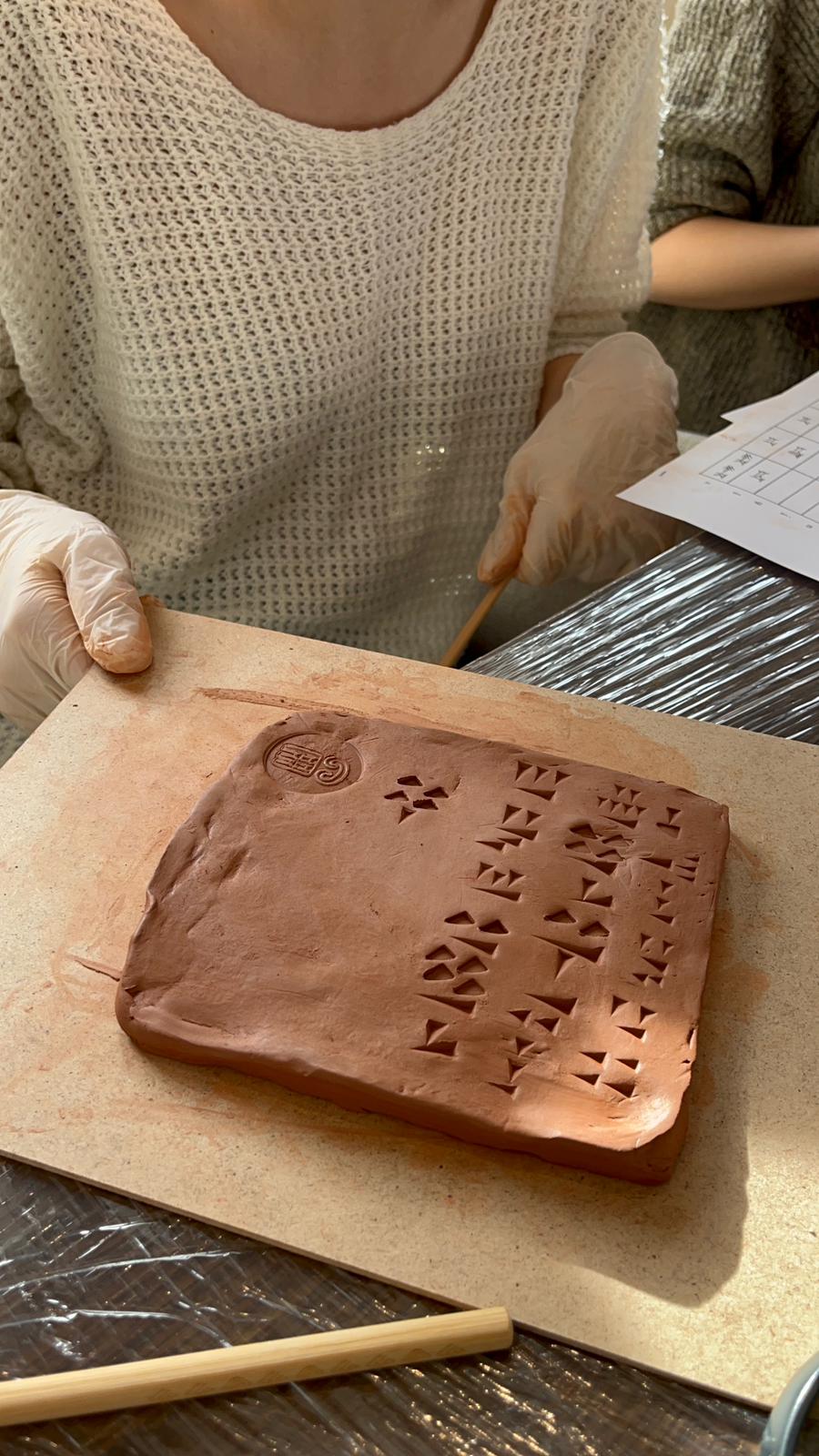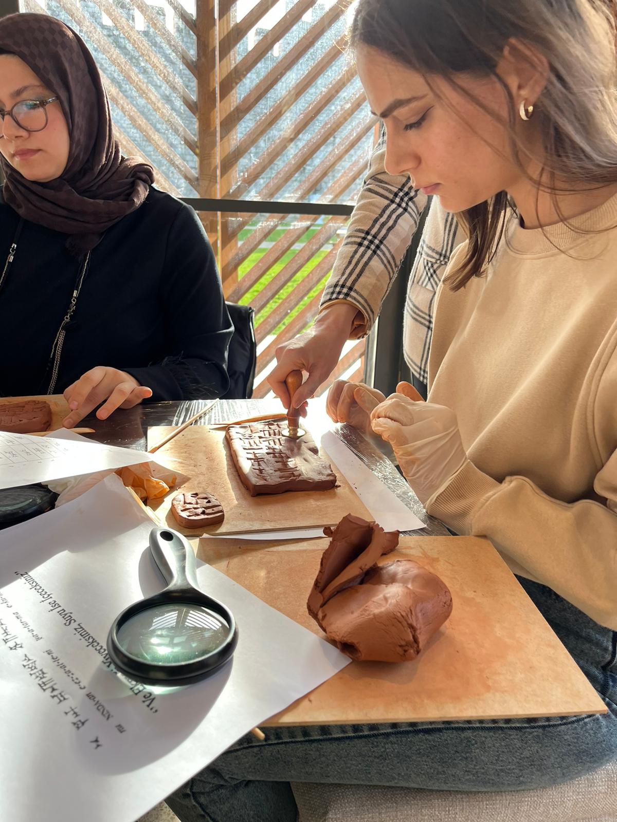 Yedikule Hisarı'nda düzenlenen Çivi Yazısı Atölyesi katılımcılara bu antik sanatı kendi elleriyle uygulama fırsatı sunuyor.