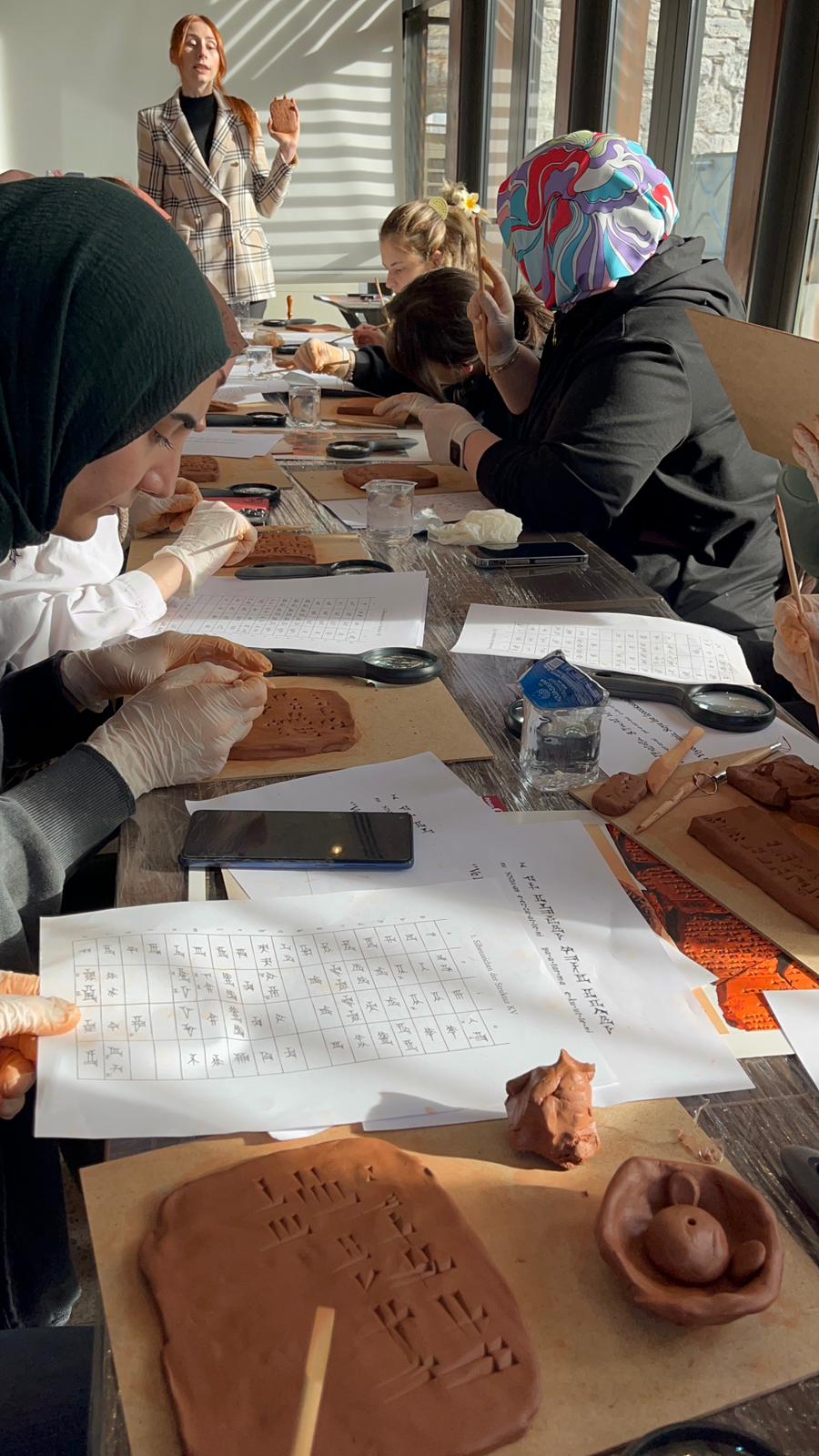 Yedikule Hisarı'nda gerçekleştirilen Çivi Yazısı Atölyesi bu antik yazı biçiminin icadından tarihi gelişimine, çeşitli dillerde ve kültürlerdeki kullanımına kadar birçok yönüyle katılımcılara aktarıyor. Atölye çivi yazısının kökenlerini keşfetmenin yanı sıra döneminde kullanılan yazı malzemelerini inceleme fırsatı sunuyor. Islak kil üzerine özel bir yazı kalemi olan stylus ile çivi yazısı deneyimini yaşayan katılımcılar bu antik sanatı kendi elleriyle uygulamanın keyfini sürüyorlar. Ayrıca atölye sonunda hazırlanan tabletler katılımcılara özel bir hatıra olarak sunuluyor, böylece bu deneyimi hatırlamalarına olanak tanınıyor.