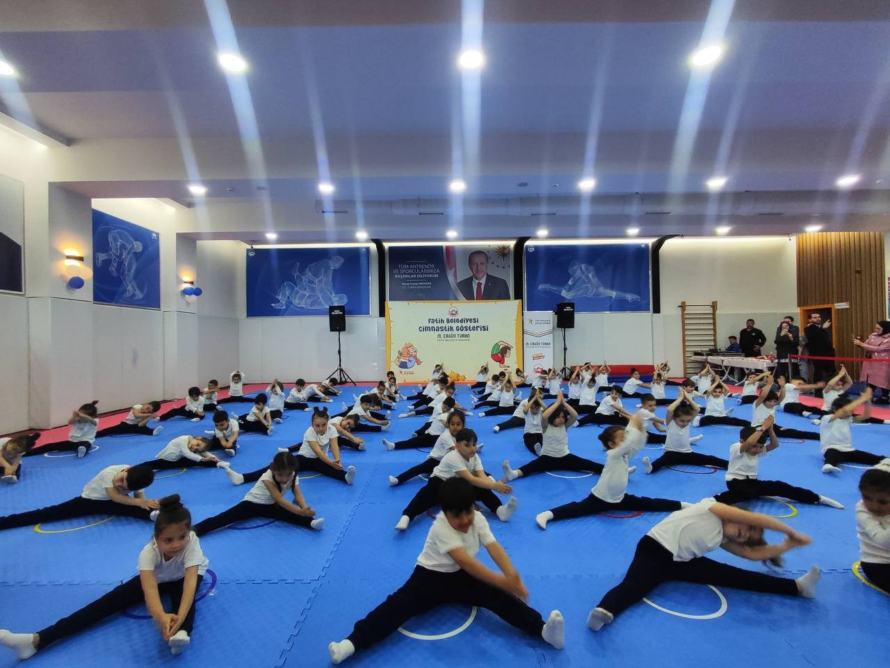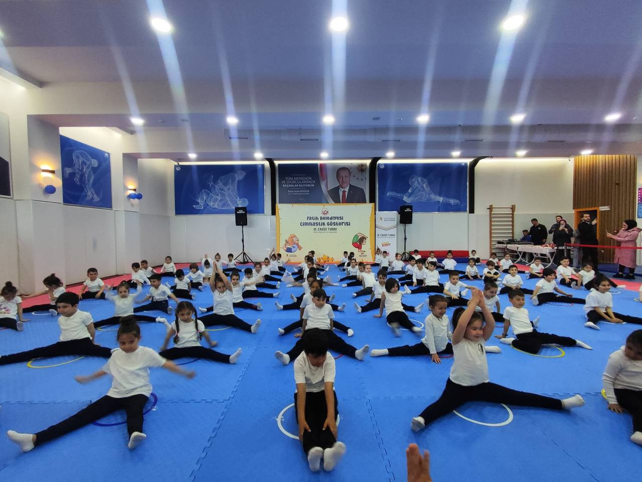 Fatih Belediyesi’nin çocuklara yönelik spor odaklı çalışmalarından biri olan Cimnastik Gösteri Programı, Draman Yüzme Havuzu ve Spor Merkezi’nde görkemli bir organizasyonla gerçekleştirildi. Gençlik ve Spor Müdürlüğü’ne bağlı Çocuk Durakları ile Draman Yüzme Havuzu ve Spor Merkezi’nde eğitim alan öğrencilerin yer aldığı gösteri programı çocukların bedensel gelişimlerine katkı sağlarken sahneye ilk adımlarını atmalarına da vesile oldu.