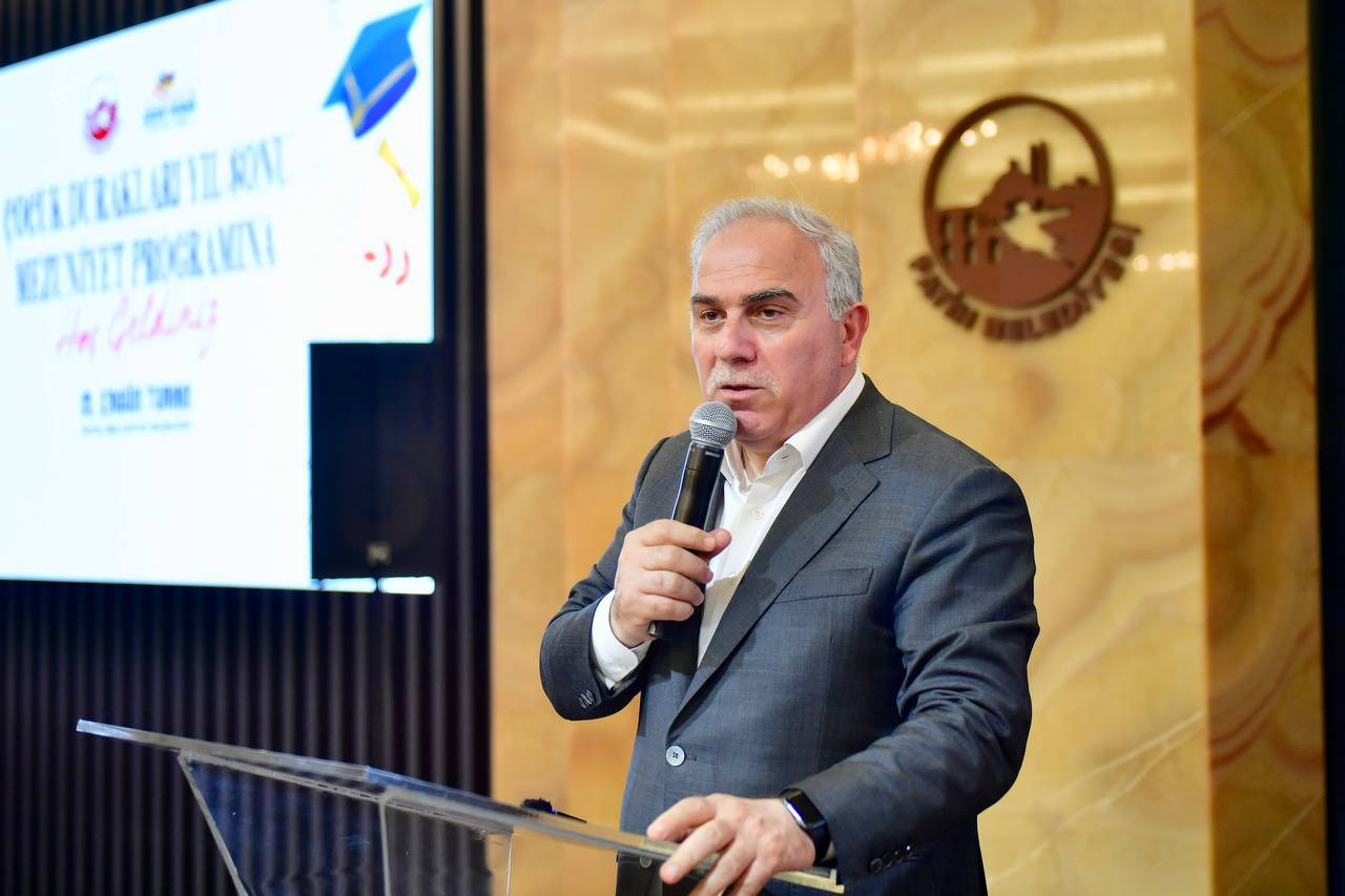 Çocuk Durakları Yıl Sonu Mezuniyet Programı’nda öğrenciler yıl boyunca edindikleri bilgi ve yetenekleri sergiledi. Programa katılan Fatih Belediye Başkanı M. Ergün Turan, miniklere başarılar diledi.