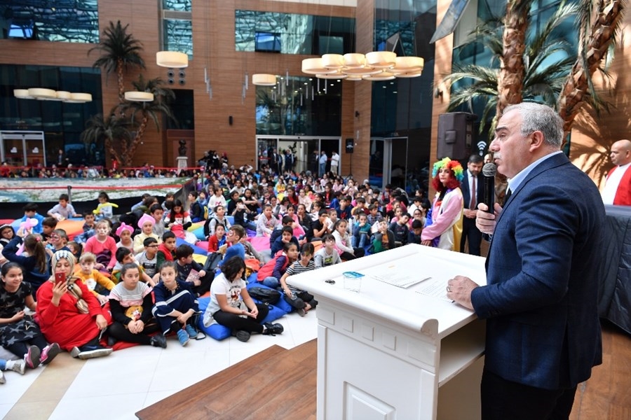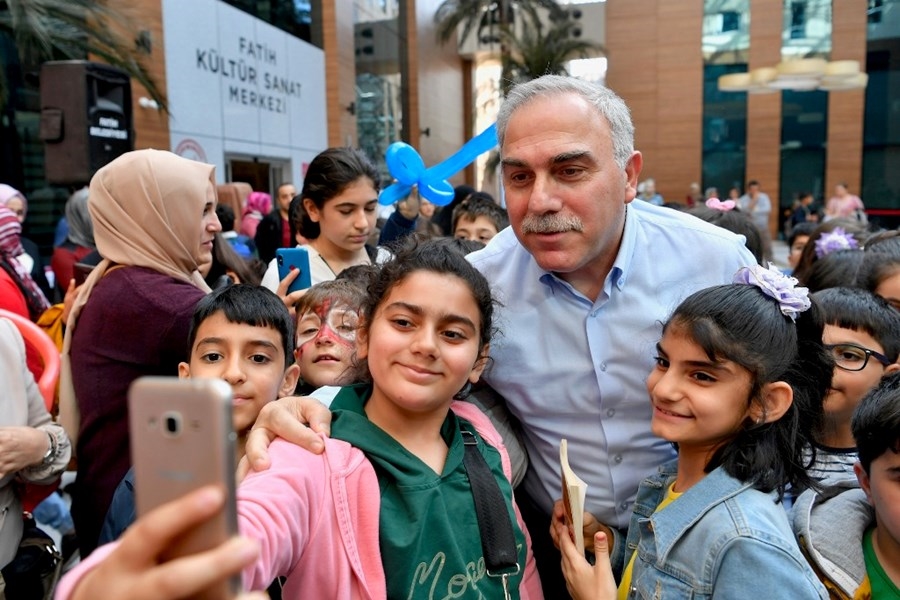 Kitaplarıyla beraber Fatih Belediyesi Hizmet Binası fuaye alanına gelen yüzlerce çocuk ve genç, Fatih Belediye Başkanı M. Ergün Turan tarafından karşılandı. Başkan Turan, “Mutluluk bir zümreye ait olsa bunun yegâne sahibi çocuklar olmalıdır” düşüncesiyle hareket ettiklerini belirterek, çocukların mutluluğu için ilçedeki parkların oyun alanlarını, spor alanlarını ve kütüphanelerin sayısını arttırmaya yönelik dur duraksız çalıştıkları söyledi. Şenliğe katılan çocuklara kitap okumanın kazanımlarından da bahseden Başkan Turan, hepsiyle ayrı ayrı ilgilenerek, sohbet etti.