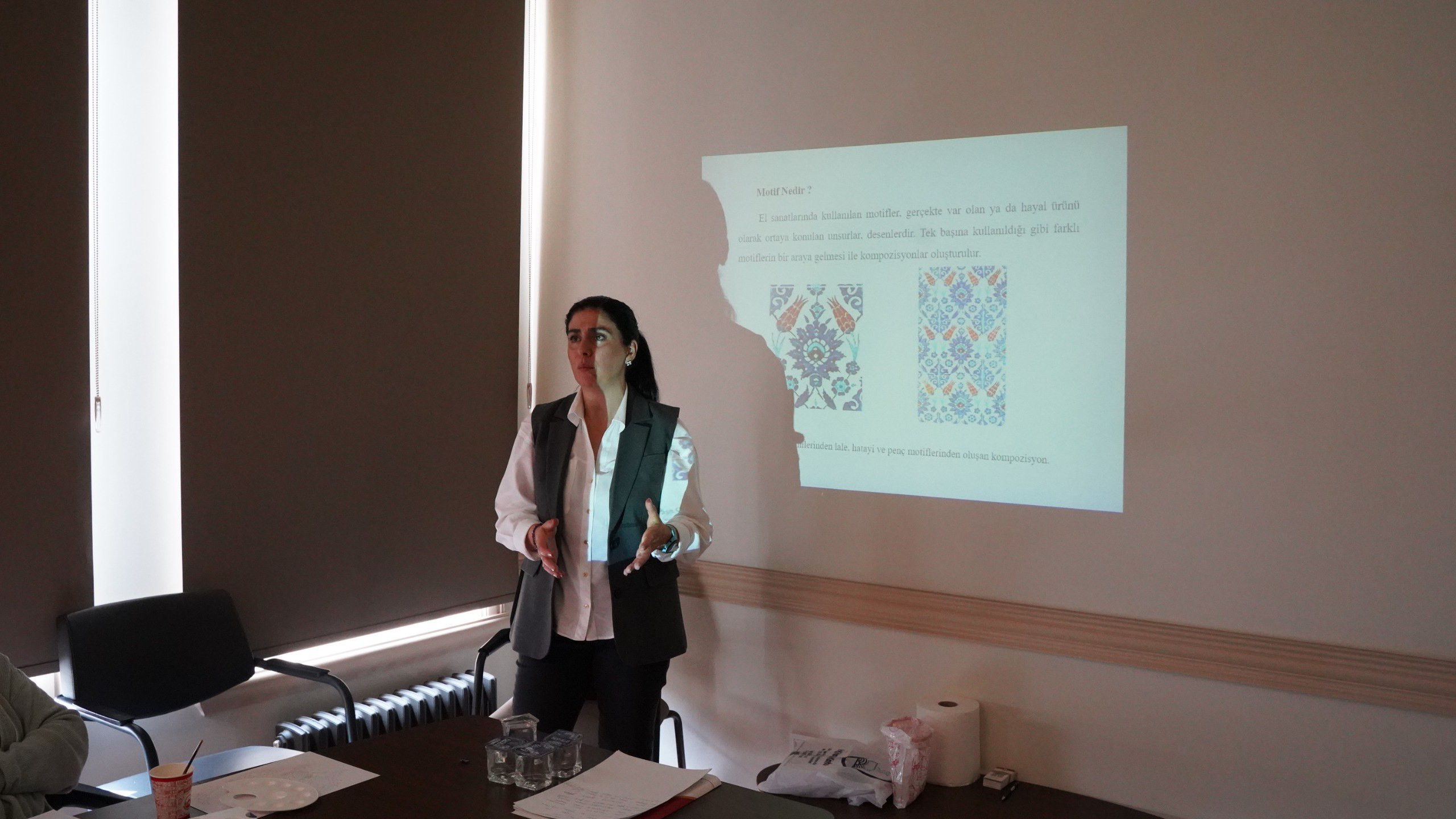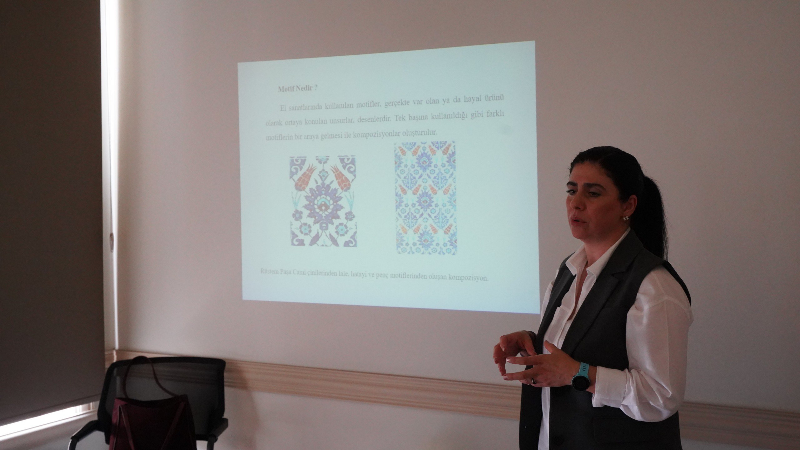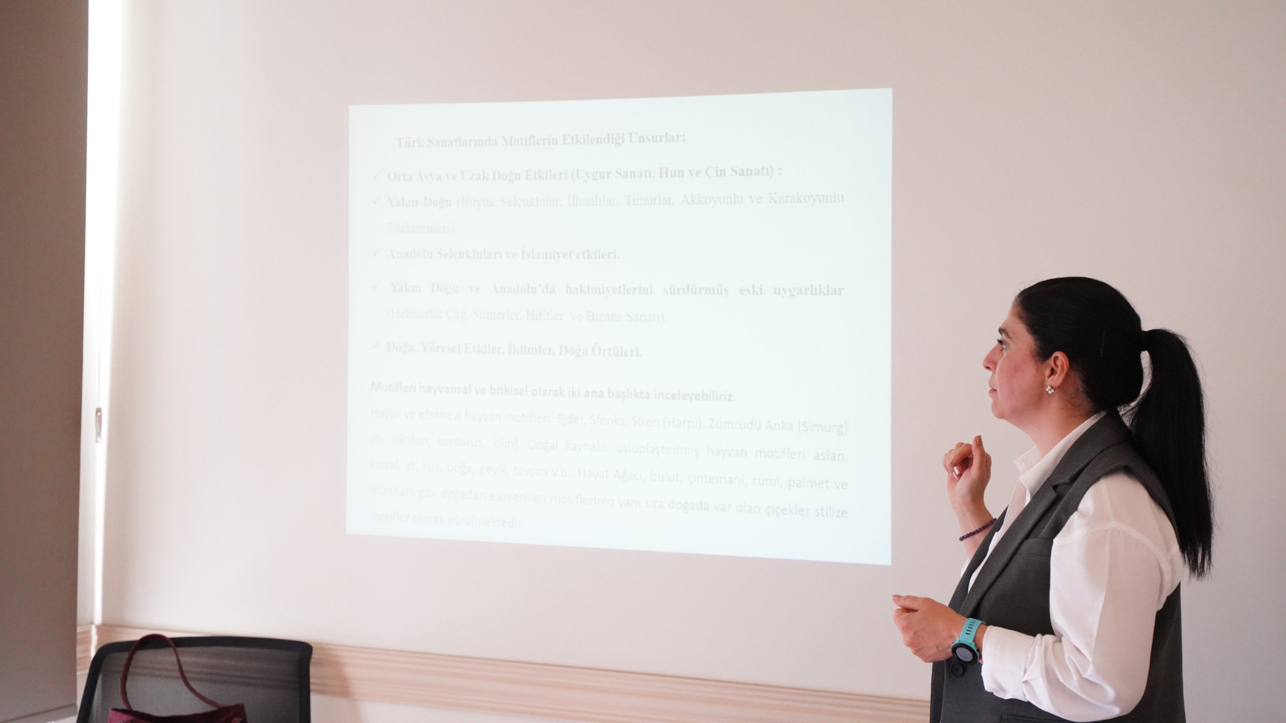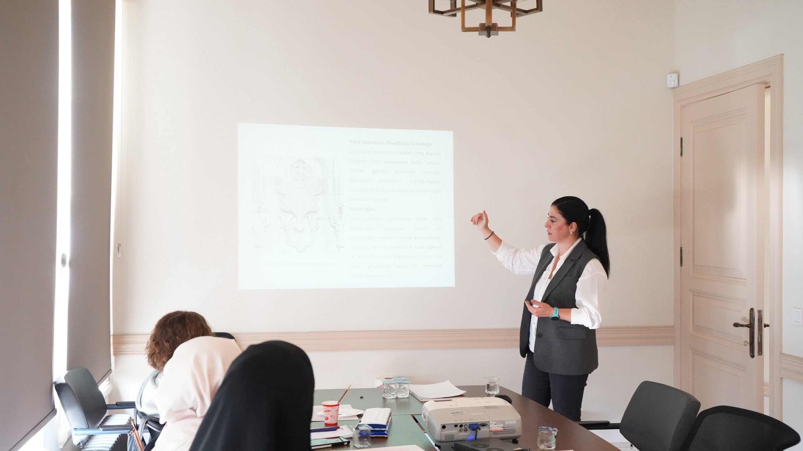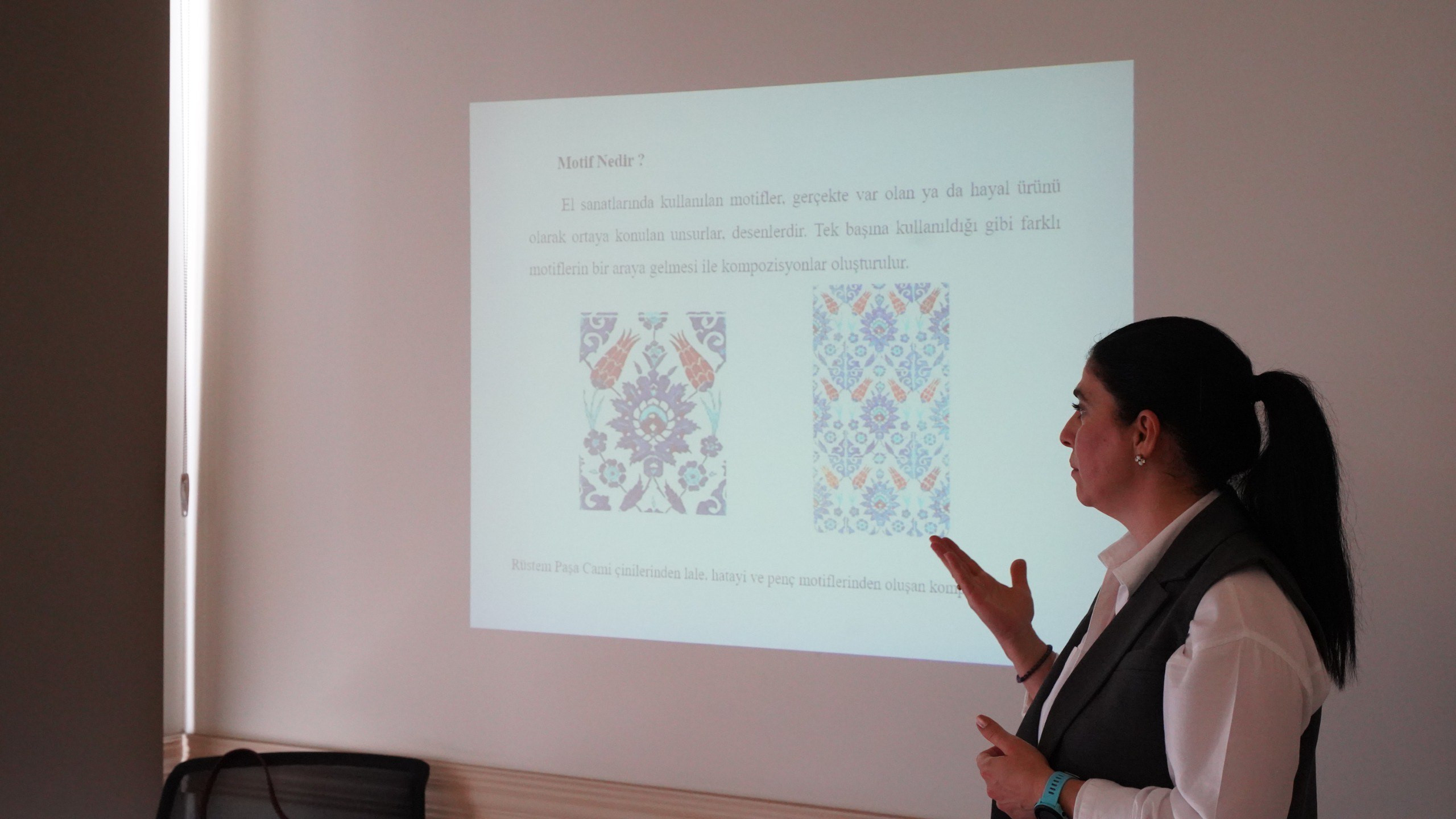 Yalnızca süsleme olarak görülen desenlerin aslında bir hafızayı, bir dili ve kimi zaman da kolektif bir kimliği taşıdığına dikkat çekilen etkinliğin ilk bölümünde motiflerin kökenleri, tarihî gelişimi ve medeniyetler arası geçiş süreçleri üzerine kapsamlı bir sohbet gerçekleştirildi. Katılımcılar Anadolu’dan Orta Asya’ya, Selçuklu’dan Osmanlı’ya uzanan kültürel çizgide motiflerin nasıl bir anlatı aracı olarak kullanıldığını dinledi. Sözlü kültürün, inançların ve toplumsal değerlerin desenlere nasıl yansıdığı; kimi motiflerin nasıl korunup kimi zaman dönüştüğü ve yeniden yorumlandığı da tartışılan başlıklar arasında yer aldı.