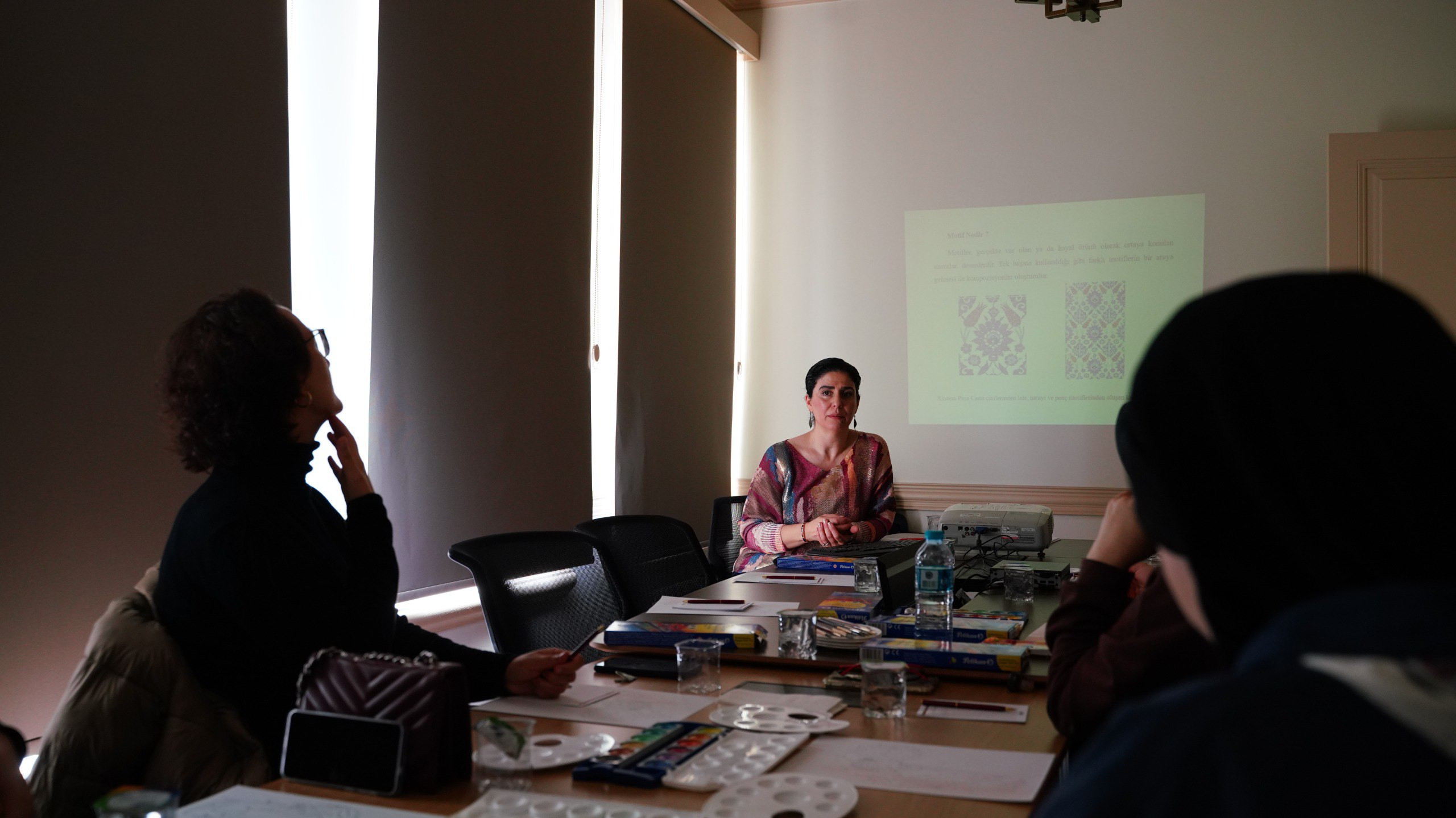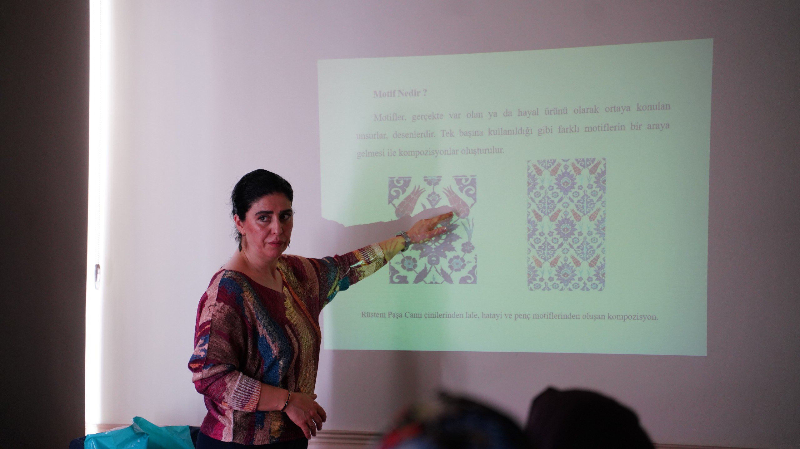 Yalnızca süsleme olarak görülen desenlerin aslında bir hafızayı, bir dili ve kimi zaman da kolektif bir kimliği taşıdığına dikkat çekilen etkinliğin ilk bölümünde motiflerin kökenleri, tarihî gelişimi ve medeniyetler arası geçiş süreçleri üzerine kapsamlı bir sohbet gerçekleştirildi. Katılımcılar Anadolu’dan Orta Asya’ya, Selçuklu’dan Osmanlı’ya uzanan kültürel çizgide motiflerin nasıl bir anlatı aracı olarak kullanıldığını dinledi. Sözlü kültürün, inançların ve toplumsal değerlerin desenlere nasıl yansıdığı; kimi motiflerin nasıl korunup kimi zaman dönüştüğü ve yeniden yorumlandığı da tartışılan başlıklar arasında yer aldı.