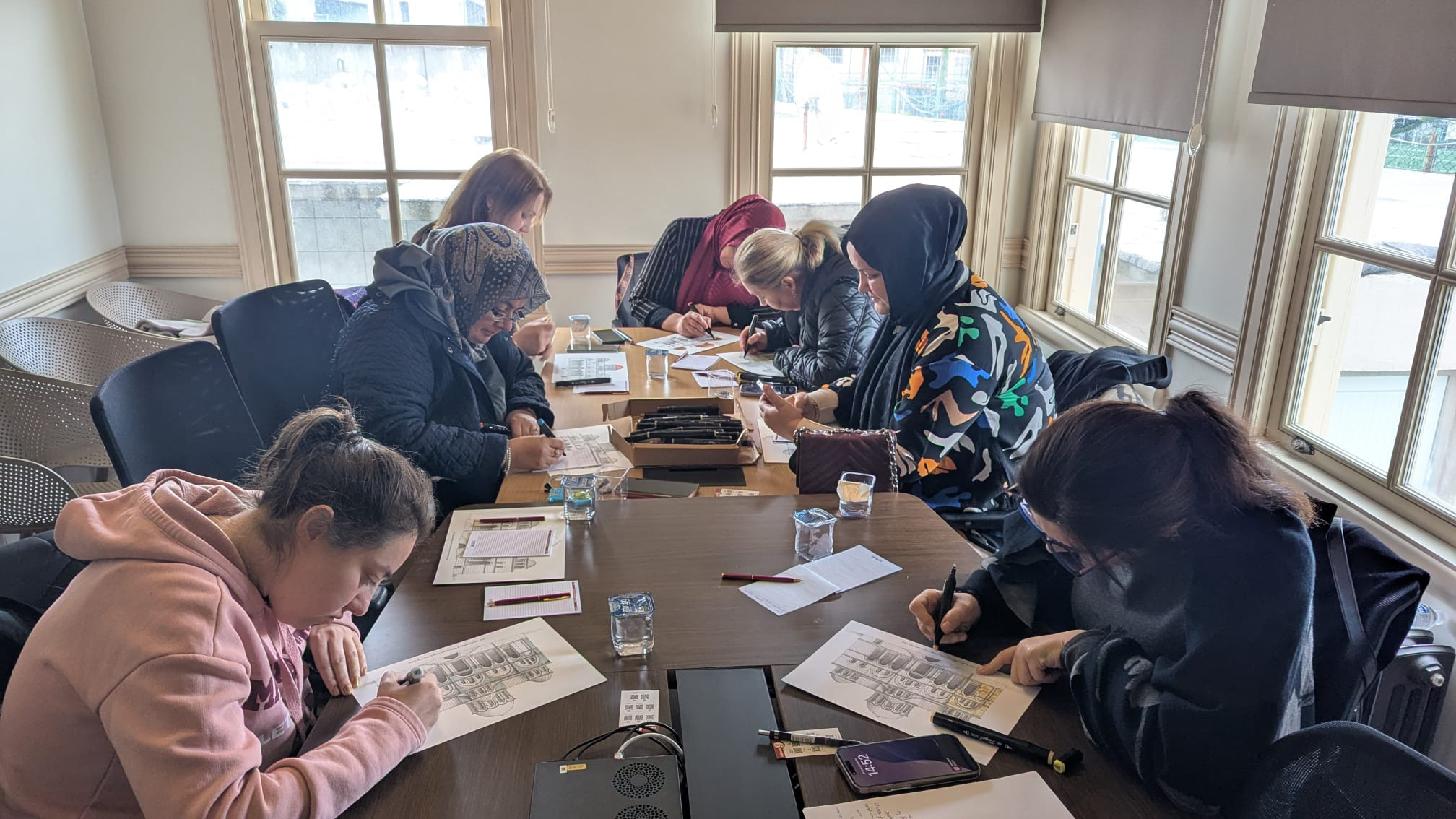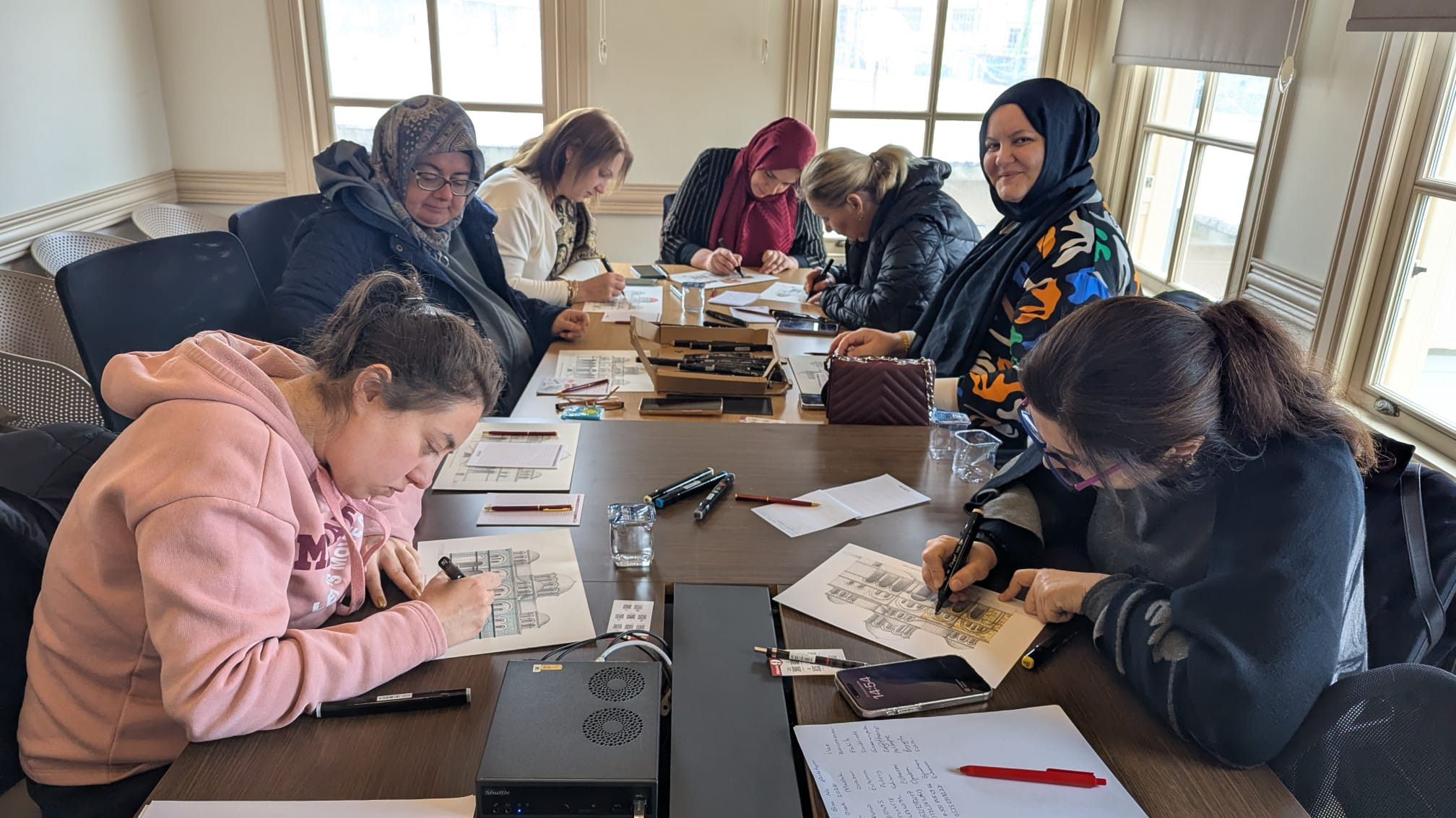 Söyleşinin ardından düzenlenen boyama uygulamasında katılımcılar öğrendikleri bilgiler ışığında seçtikleri bir motifi renklendirdi. Bu uygulamalı bölümde her katılımcı bir deseni kendi estetik ve duygusal tercihleriyle yeniden yorumlayarak kişisel bir anlatıya dönüştürdü. Böylece yalnızca teorik bir bilgi aktarımı değil, üretime dayalı katılımcı bir deneyim de yaşanmış oldu. Renklerle buluşan motifler herkesin evine taşıdığı bir hatıra olarak etkinliği kalıcı hale getirdi.