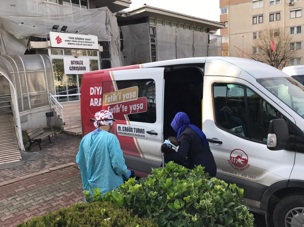 Fatih’te ikamet eden ve tedavileri için ulaşım sıkıntısı yaşayan kronik böbrek hastası vatandaşlarımıza, ücretsiz servis imkânı sunarak, haftanın 3 günü diyaliz merkezine götürüyor ve tedavileri sonrası evlerine bırakıyoruz.
