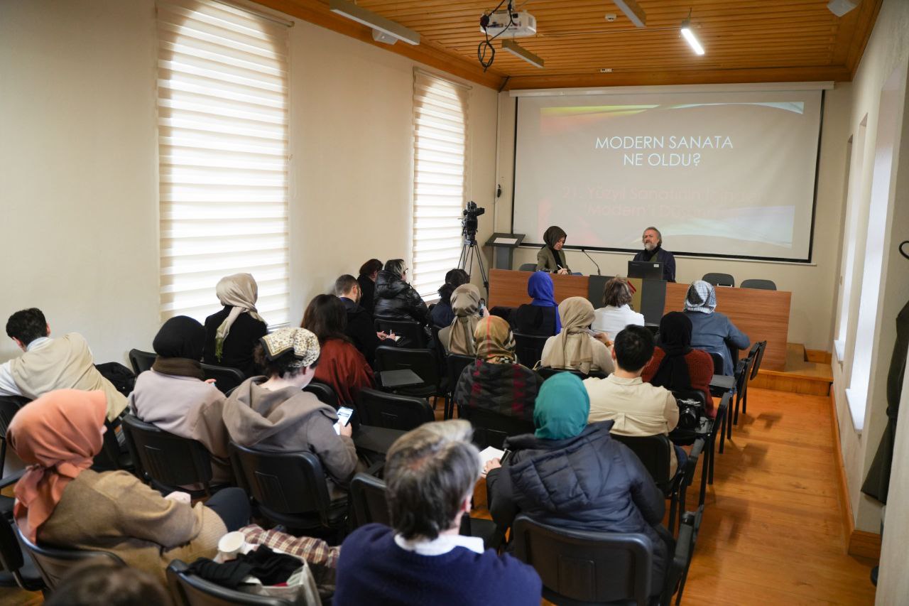 Fatih Belediyesi, Klasik Türk Sanatları Vakfı ve Fatih Sultan Mehmet Vakıf Üniversitesi işbirliğiyle düzenlenen "Modern Sanata Ne Oldu?" başlıklı program FSMVÜ Ayasofya Yerleşkesi'nde gerçekleşti. Doç. Dr. Oğuz Haşlakoğlu, 21. yüzyıl sanatının çeşitliliğini ve derinliğini eleştirel bir bakış açısıyla değerlendirerek izleyicilere düşündürücü bir perspektif sunarken programın moderatörlüğünü Dr. Öğr. Üyesi Emine Canlı üstlendi. Betül Bilgin ve Zehra Kaygusuz koordinatörlüğünde gerçekleşen etkinlik sanatseverler tarafından büyük bir ilgi ve merakla takip edildi.
