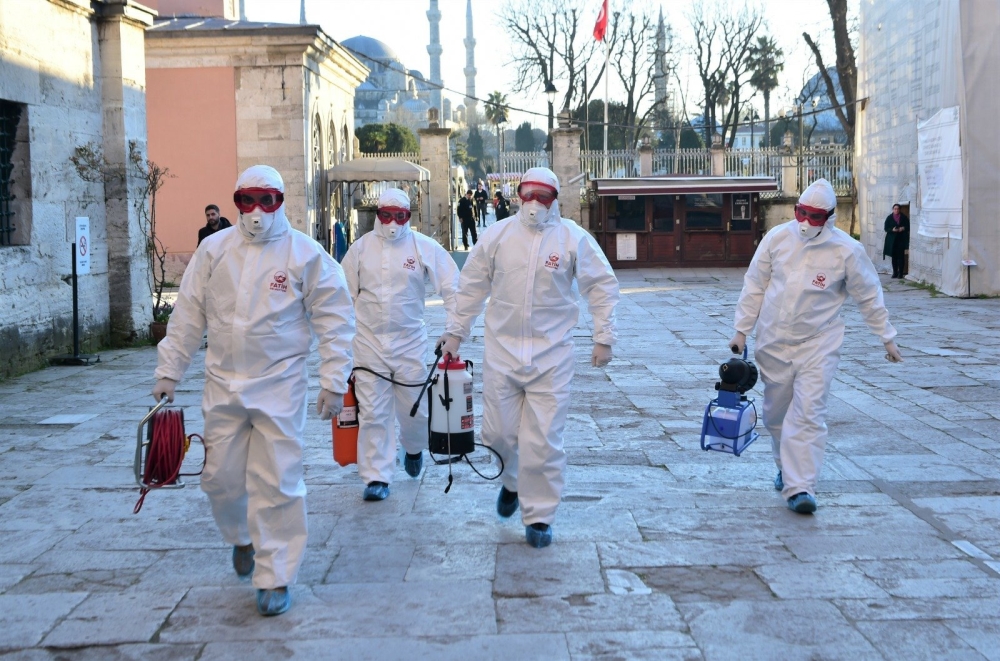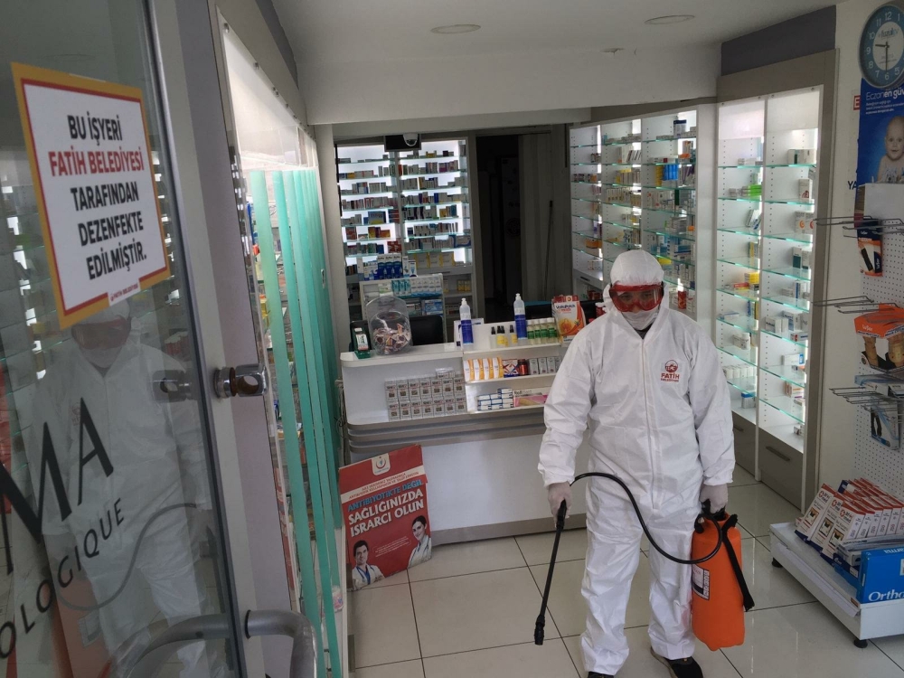 ‘Hiçbir virüs alınan tedbirlerden daha güçlü değildir’ düsturuyla hareket eden Fatih Belediyesi, tüm mahallelerini sokak sokak dezenfektanlı su ile yıkamaya devam ediyor. Daha önce ilçedeki tüm kütüphane, ibadethane, berber ve taksi duraklarını dezenfekte eden Fatih Belediyesi, mahalle mahalle ilerleyerek ilçe sınırlarında hizmet veren eczaneleri de periyodik olarak dezenfekte ediyor.