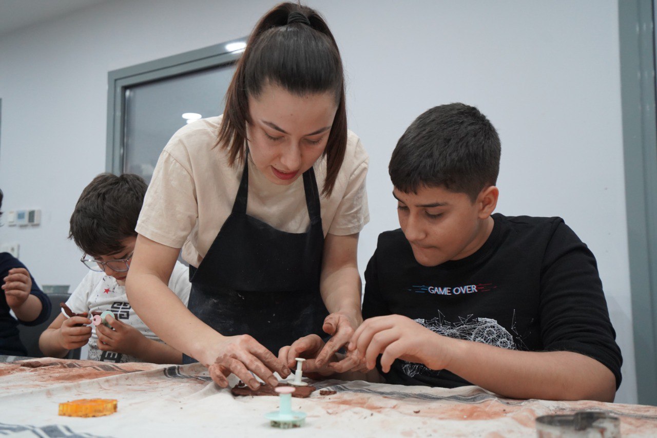 Fatih Belediyesi'nin Sosyal İşler Birimi tarafından gerçekleştirilen Özel Gereksinimli Çocuklar İçin Seramik Atölyesi 7-12 yaş aralığındaki çocuklara sadece sanatı öğretmekle kalmıyor, aynı zamanda birçok fayda da sunuyor. Bu atölye çocukların yaşamlarını zenginleştiren ve gelişimlerine katkı sağlayan önemli bir deneyim olmanın yanı sıra uzun süreli odaklanma güçlüğü yaşadıkları durumlarda bile etkili olabiliyor. Seramik çamuru çocukların saatlerce yoğunlaşabileceği ve sakinleştirici etkisi olan bir malzeme olarak öne çıkıyor. Kaygı, dikkat sorunları veya hiperaktivite gibi durumlarda çocuklara destek olurken aynı zamanda yaratıcılıklarını da ortaya çıkarmalarını sağlıyor. Özellikle motor becerilerinin gelişimine katkı sunan seramik dersleri çocuklara el ve kol kaslarını kullanma şansı veriyor. Çamurun şekillendirilmesi sırasında el-göz koordinasyonu ve ince motor becerilerini de geliştiriyorlar. Bu atölye aynı zamanda çocukların sosyalleşmelerine fırsat tanıyor. Zorlukları keşfetme, problemleri çözme ve hatalardan öğrenme gibi önemli becerileri destekleyen Seramik Atölyesi özel gereksinimli, otizm veya dikkat eksikliği tanısı alan çocuklara bir eğitim imkanı sunuyor. Katılımcılar etkinliği ilgiyle takip ediyorlar.